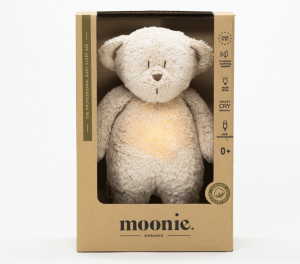 Dotaz na produkt Na splátky ještě dnesMoonie usínáček v podobě roztomilého medvídka s nočním světlem a relaxačními zvuky pomáhá miminku uklidnit se a snáze usnout. Uklidňující zvuky připomínají dítěti prostředí v děloze maminky před jeho narozením. Usínáček nabízí pět přírodních relaxačních zvuků (tlukot srdce, vítr, lesní potok, mořské vlny, déšť), kalimba ukolébavku, dvě klasické ukolébavky a umožňuje nahrání vlastního hlasu.