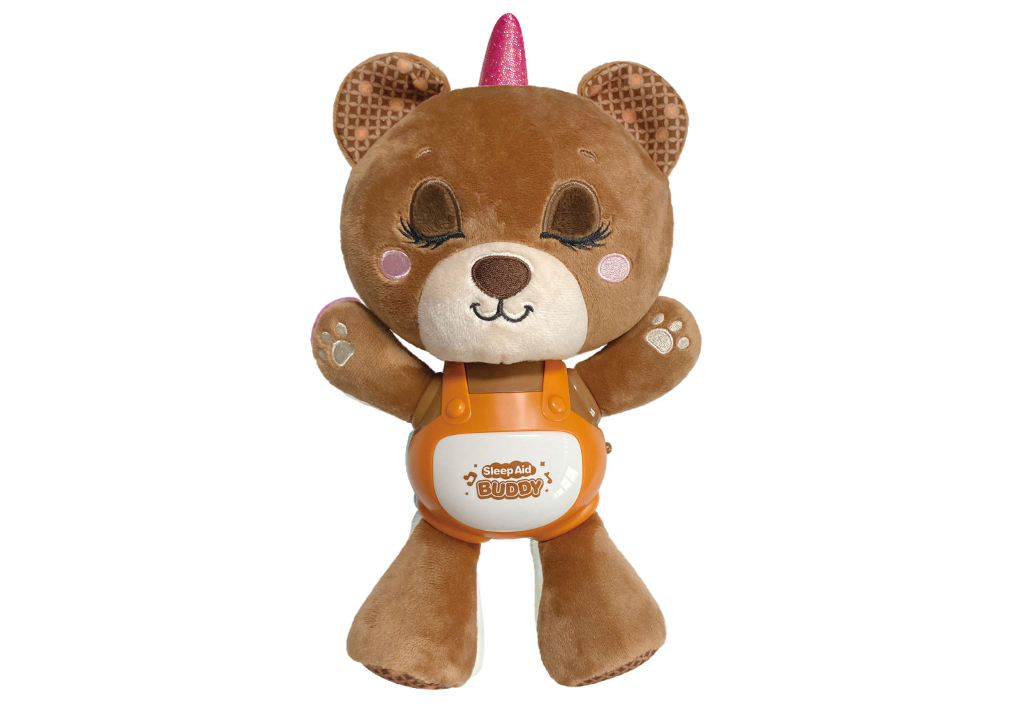 Dotaz na produktUsínáček medvěd. Velikost 29 cm. baterie 3xAAA nejsou součástí. Přepínač on/off na boku zvířátka. Stisknutím bříška se spouští zvukové efekty- 1. stisknutí ukolébavka, 2. stisknutí uklidňující hudba, 3. stisknutí chrápání, 4. stisknutí pouze světlo, 5. stisknutí vypnutí, 6. stisknutí - proměnlivý režim.