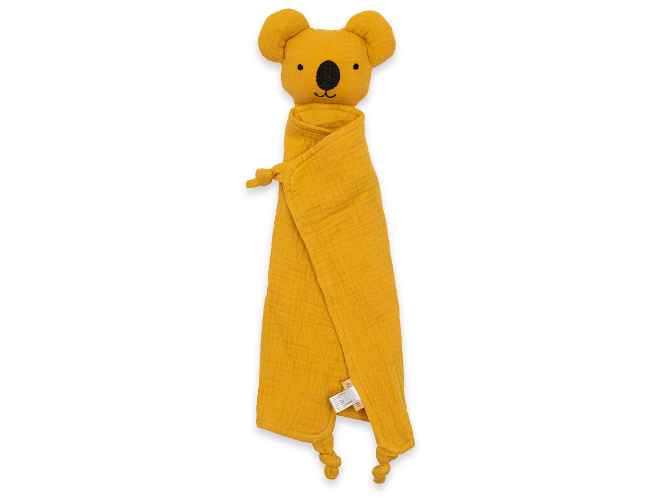 Dotaz na produktUsínáček mušelínový New Baby Koala mustard. 100% organická bavlna. Materiál: 100% polyester. Rozměry: 30x30 cm.