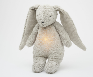 Bříško zajíčka svítí a slouží jako noční světlo s výběrem sedmi barev svícení. Jemné světlo pomáhá dítěti cítit se v postýlce bezpečně. Světlo je možné zapnout i bez zvuků. Při zapnuté funkci Shake světlo zapnete zatřesením hračkou. Zajíček se při svícení nijak nezahřívá a je pro dítě zcela bezpečný.