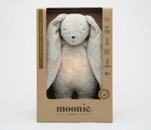 Moonie usínáček v podobě roztomilého zajíčka s nočním světlem a relaxačními zvuky pomáhá miminku uklidnit se a snáze usnout. Uklidňující zvuky připomínají dítěti prostředí v děloze maminky před jeho narozením. Usínáček nabízí pět přírodních relaxačních zvuků (tlukot srdce, vítr, lesní potok, mořské vlny, déšť), kalimba ukolébavku, dvě klasické ukolébavky a umožňuje nahrání vlastního hlasu.