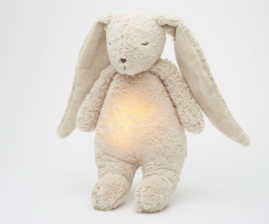 Bříško zajíčka svítí a slouží jako noční světlo s výběrem sedmi barev svícení. Jemné světlo pomáhá dítěti cítit se v postýlce bezpečně. Světlo je možné zapnout i bez zvuků. Při zapnuté funkci Shake světlo zapnete zatřesením hračkou. Zajíček se při svícení nijak nezahřívá a je pro dítě zcela bezpečný.