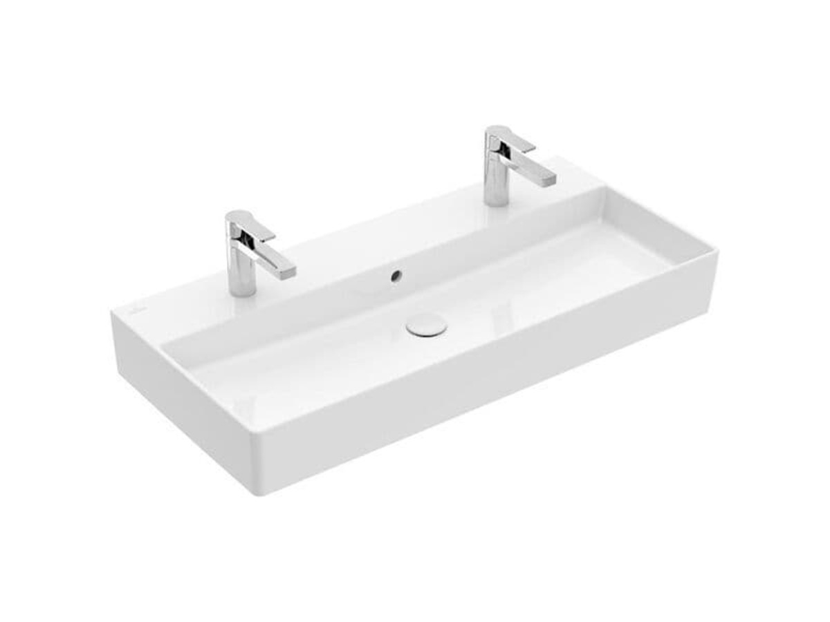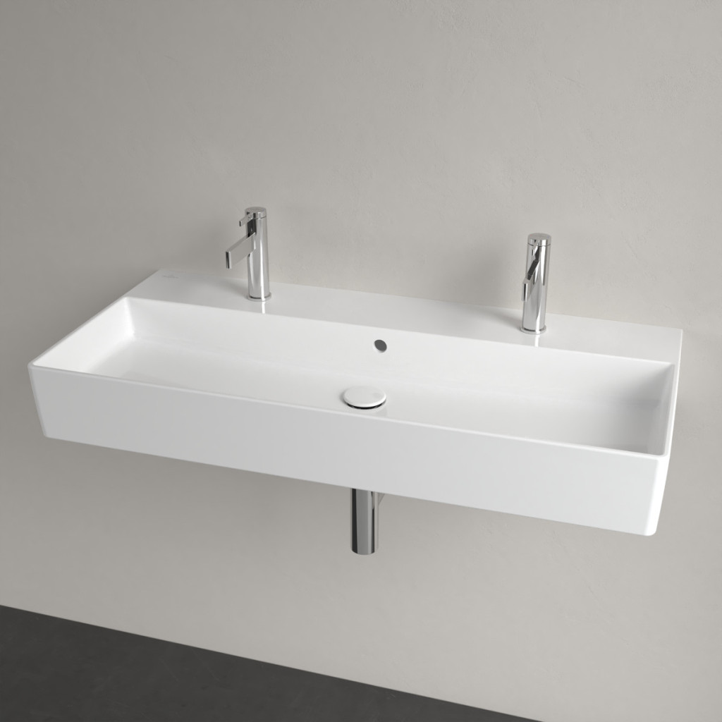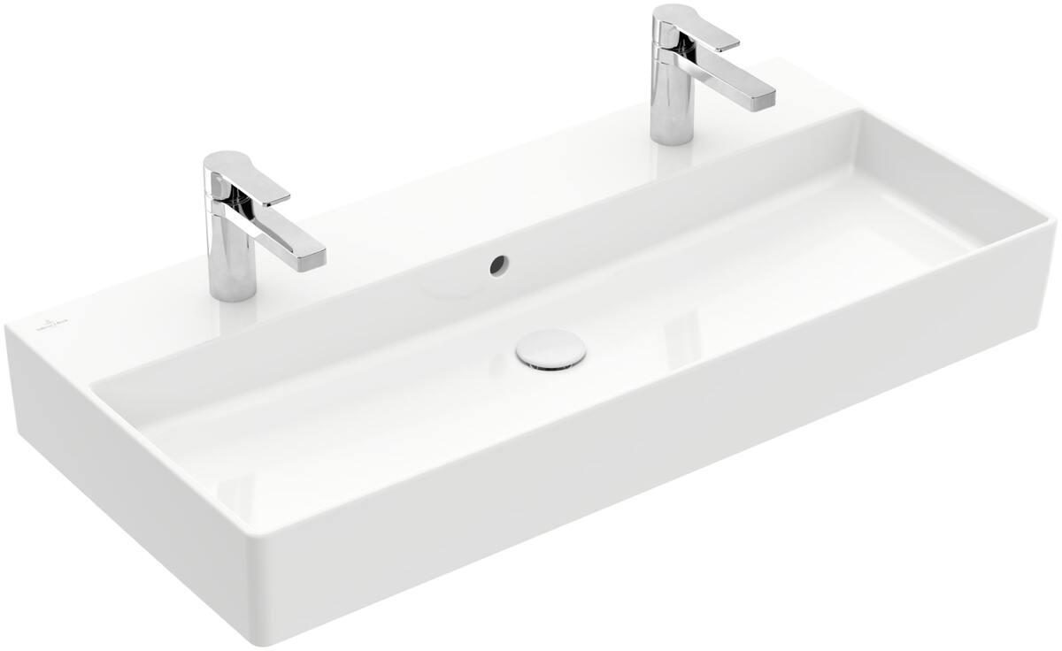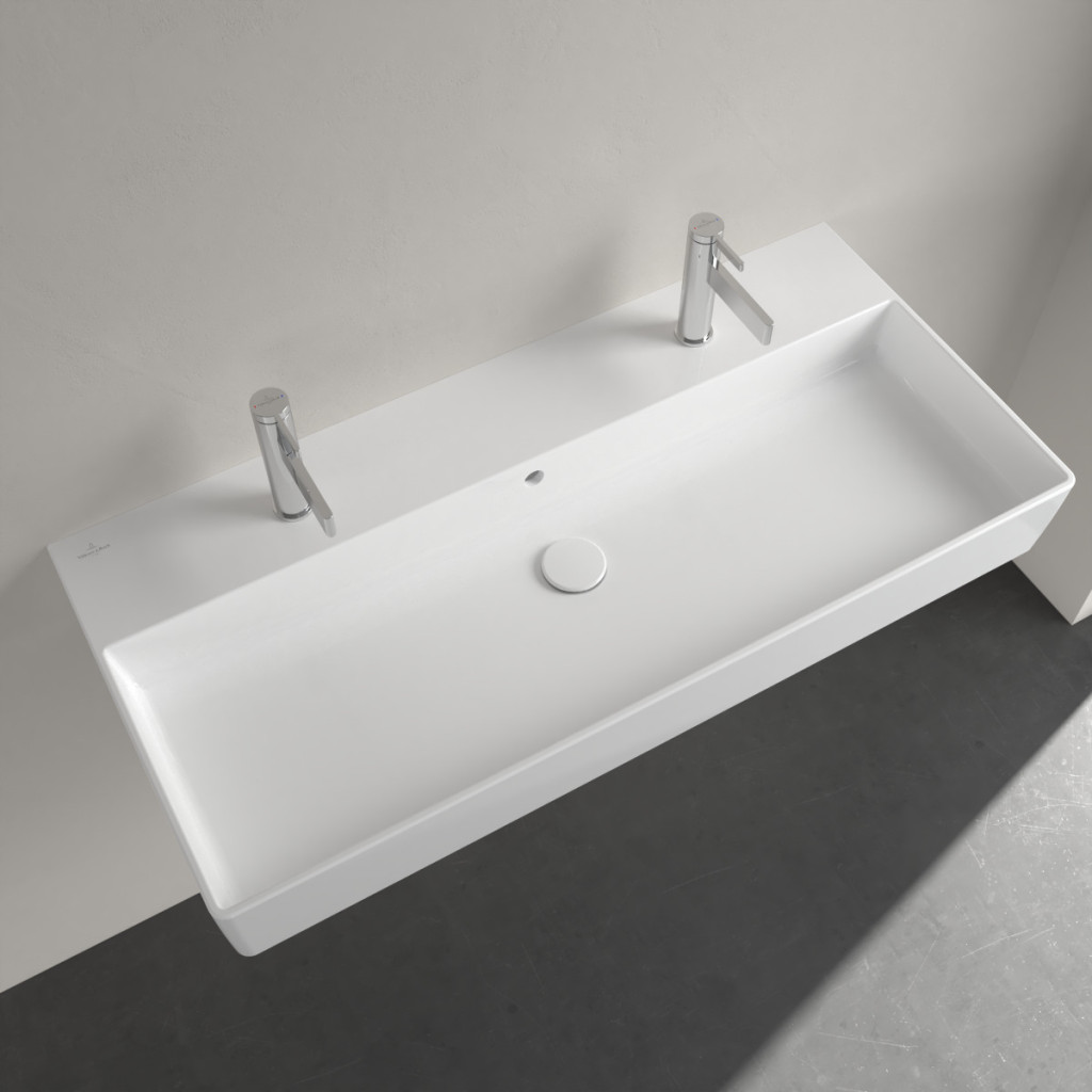 Dotaz na produkt Na splátky ještě dnesObdélníkové nástěnné dvojumyvadlo z kolekce Villeroy & Boch Memento 2.0 přináší do rodinné koupelny vysoký komfort. Umyvadlo je vyrobeno z inovativního materiálu TitanCeram a díky ultratenkým, ale výjimečně pevným hranám působí moderně a lehce. Dva otvory pro baterie s prostorem pro dvě kohoutky umožňují provádět každodenní koupelnové úkony dvěma osobám současně. Příslušenství, které je k tomu potřeba, lze snadno umístit na dosah na širokou odkládací plochu pro baterie. Povrch odpuzující nečistoty usnadňuje čištění tohoto keramického předmětu. Praktické a pohodlné!