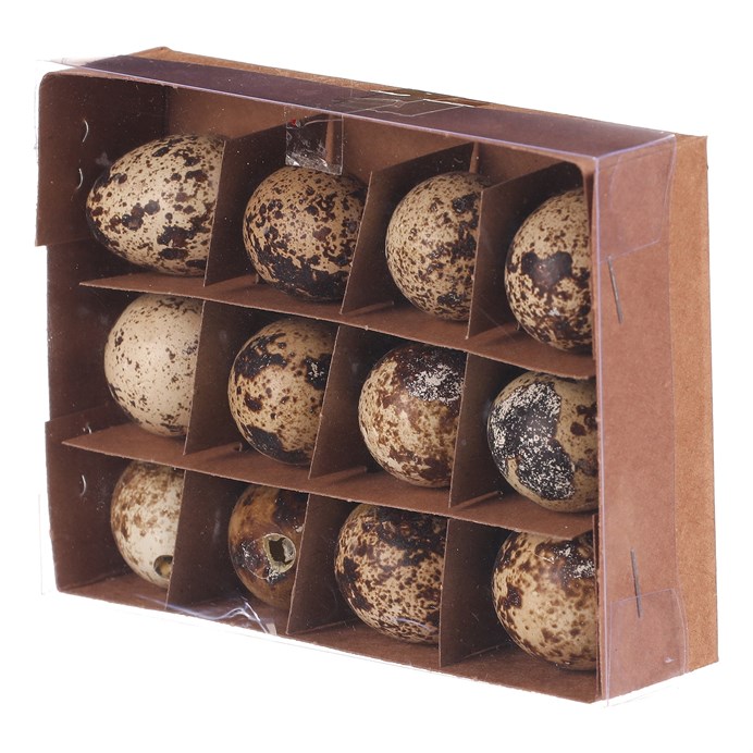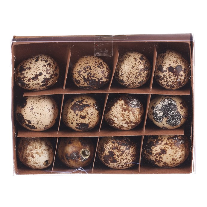 Dotaz na produktBalení obsahuje 12 pravých křepelčích vajíček s charakteristickou kropenatou skořápkou v přírodních béžových odstínech. Vajíčka jsou pečlivě uspořádána v papírovém obalu s průhlednou fólií, která zajišťuje jejich ochranu a přehledné vystavení. Jsou vhodná výhradně pro dekorativní účely, kde vyniknou svým autentickým vzhledem a přírodní barevností.