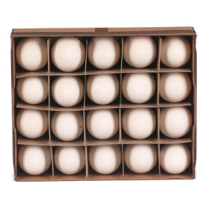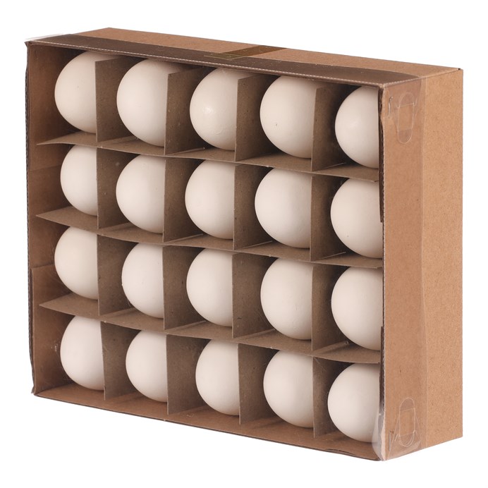 Dotaz na produktBalení obsahuje 20 bílých slepičích vajec určených výhradně pro aranžování a dekorace. Jsou uložena v praktickém kartonovém obalu s přihrádkami, které je chrání před poškozením. Díky svému přirozenému vzhledu a jednotné velikosti se skvěle hodí do velikonočních aranží, věnců i dalších dekorací, kde působí naprosto autenticky.