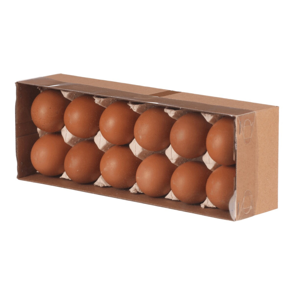 Dotaz na produktBalení obsahuje 12 pravých slepičích vajec v hnědém provedení, vhodných pro široké využití k aranžování. Vajíčka jsou uložena v praktickém papírovém obalu, který zajišťuje jejich bezpečné uskladnění a snadnou manipulaci. Hnědá skořápka je přirozená a typická pro tento druh vajec. Tento produkt je určen výhradně pro dekorativní účely.