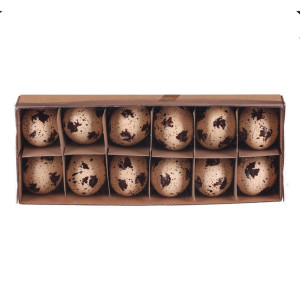 Dotaz na produkt Na splátky ještě dnesBalení obsahuje 12 pravých slepičích vajíček s kropenatým vzorem v béžových odstínech. Vajíčka jsou pečlivě uspořádána v kartonovém obalu s přepážkami, které zajišťují jejich bezpečné uložení a minimalizují riziko poškození během přepravy. Přirozená textura a barevné variace každého kusu dodávají výrobku autentický vzhled, vhodný pro dekorativní i praktické využití.