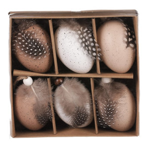 Dotaz na produktVajíčko jako symbol nového života je neodmyslitelně spjato s Velikonočními svátky a příchodem jara. V nejrůznějších velikostech a podobách je taktéž oblíbenou dekorací, jenž by ani u vás neměla rozhodně chybět. Nechte se inspirovat k vytvoření dokonalé výzdoby touto sadou plastových kropenatých vajíček ozdobených nádhernými pírky. Najdete tu tři barevné odstíny (hnědá, světle hnědá a bílá) a všechna z nich mají provázek na pověšení. Jsou lehounká a jednoduše je zavěsíte kamkoli, kde si je přejete mít, a to i třeba na slabší větvičky.