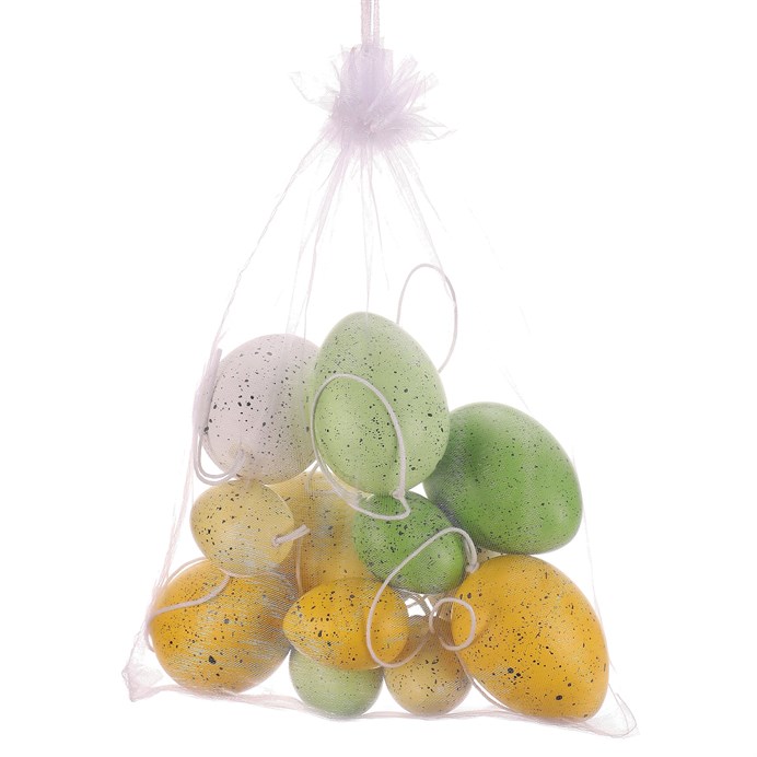 Dotaz na produktSada závěsných umělých vajíček v mixu čtyř barev a dvou velikostí přináší do interiéru či na dekorativní větvičky jarní atmosféru. Vajíčka jsou vyrobena z plastu s jemnou texturou a černými tečkami, které napodobují přirozený vzhled. Díky připevňovacím drátkům lze snadno zavěsit na větve, věnce nebo jiné dekorace. Balení obsahuje 12 kusů vhodných pro sezonní výzdobu i kreativní aranžmá.