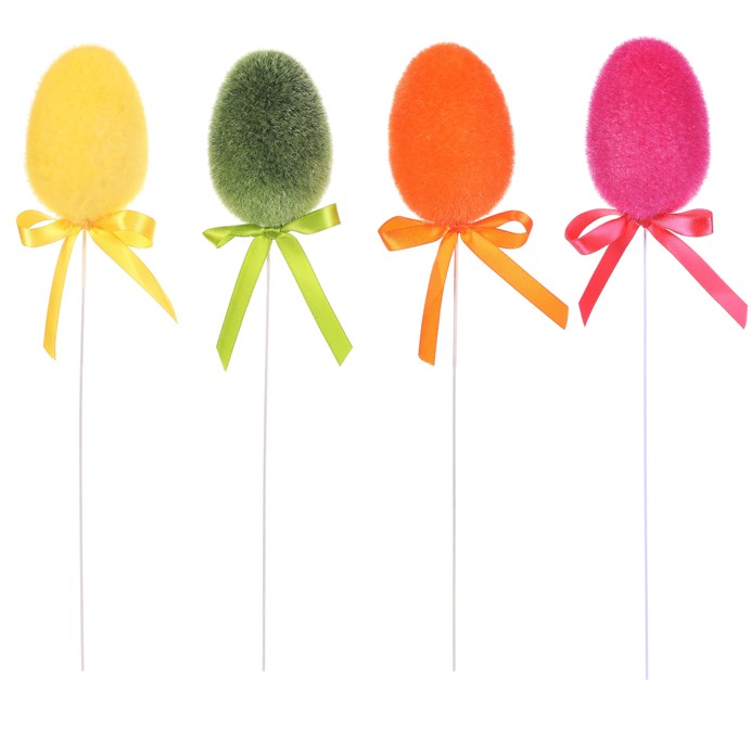 Dotaz na produktSemišové vajíčko na zápichu v mixu čtyř jarních barev přináší do interiéru nebo zahrady veselý dekorativní prvek. Povrch vajíčka je jemně chlupatý, což dodává příjemnou texturu a vizuální efekt. Každé vajíčko je doplněno stuhou v odpovídající barvě a upevněno na tenkém kovovém zápichu, který umožňuje snadné zapíchnutí do květináče, aranžmá nebo zeminy. Díky plastovému materiálu se snadno udržuje a je vhodné pro opakované použití při sezónní dekoraci.