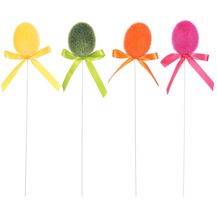 Dotaz na produktSemišové vajíčko na zápichu v mixu čtyř jarních barev – žluté, zelené, oranžové a růžové – přináší do dekorací svěží a hravý akcent. Vajíčko je vyrobeno z plastu s jemným semišovým povrchem, který dodává příjemnou texturu a vizuální efekt. Dlouhý tenký zápich umožňuje snadné zapíchnutí do květinových aranžmá, truhlíků nebo jarních dekorací. Vhodné pro oživení velikonočních a jarních výzdob v interiéru i exteriéru.
