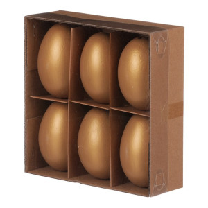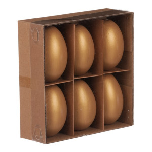 Dotaz na produktSada šesti pravých slepičích vajec v elegantní zlaté barvě představuje originální dekorativní prvek vhodný pro sezónní i celoroční aranžmá. Povrch vajec je rovnoměrně pokrytý zlatým odstínem, který dodává jemný lesk a vizuální efekt luxusu. Balení obsahuje šest kusů, které jsou bezpečně uspořádány v kartonové krabičce s přepážkami pro ochranu během skladování i přepravy. Vajíčka lze využít k dekoraci stolů, věnců nebo květinových aranžmá, kde vyniknou díky své přirozené velikosti a tvaru. Jsou ideální pro kreativní doplnění interiéru nebo tematických výzdob.