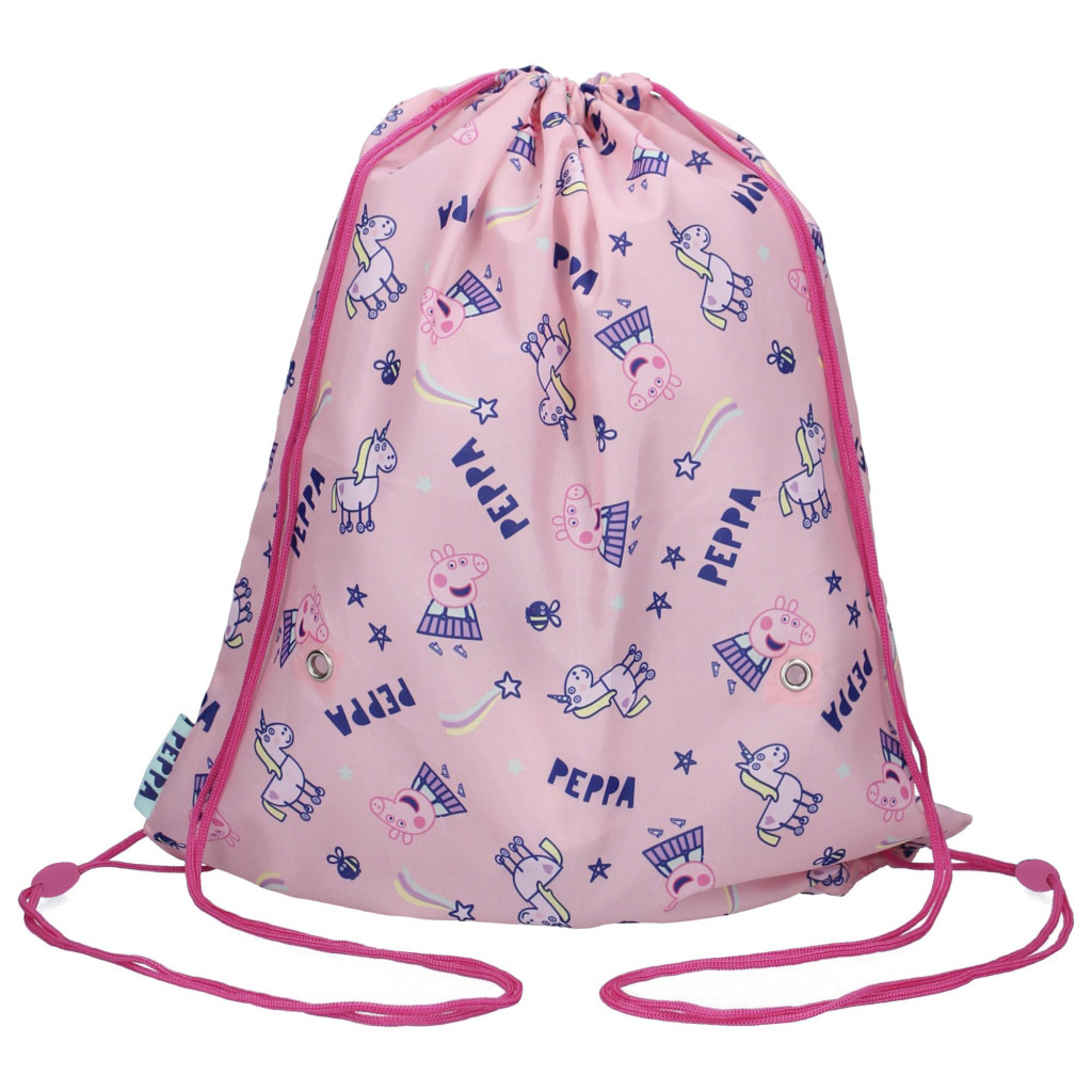 Vak na záda s motivem Peppa Pig. Rozměry: 44 x 37 cm. Se stahující šňůrkou. Materiál: polyester. Pevný, kvalitní materiál. Výrobce: Vadobag. Vadobag Europe B.V.Technopol 335026 SB Tilburg, Holandia salessupport@vadobag.nl