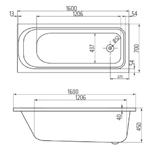 ÚvodKoupelnaVanyVana 160x70x45 cm, 132 l, akrylátová, bez nohou, bílá, VIGOUR One