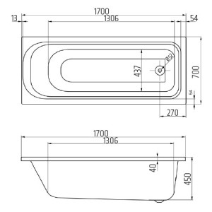 ÚvodKoupelnaVanyVana 170x70x45 cm, 148 l, akrylátová, bez nohou, bílá, VIGOUR One