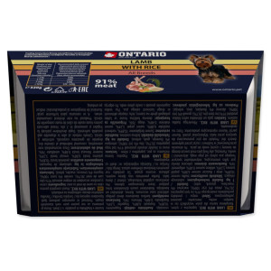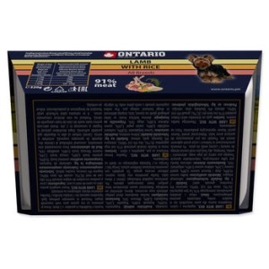 Maso a vedlejší produkty živočišného původu 91% (z toho jehněčí 20,7%), obiloviny 4% (rýže 100%), zelenina 4% (mrkev, hrášek, celer).