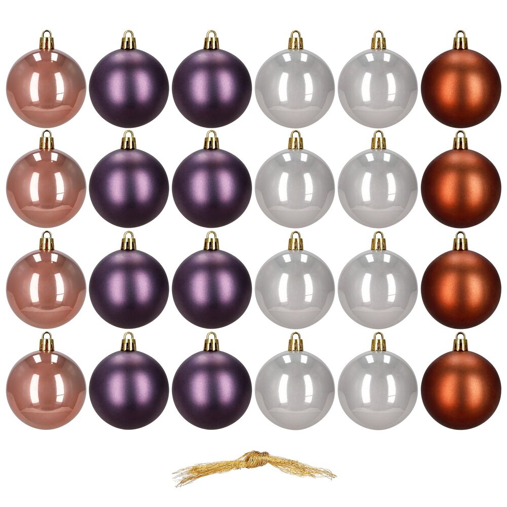 Vánoční baňky barevné mix – 6,5 cm sada 24 ks přinášejí svěží a moderní vzhled do vaší sváteční výzdoby. Kombinace elegantních odstínů vytváří harmonický celek, který skvěle doplní vánoční stromek i další dekorace v domácnosti. Baňky jsou vyrobeny z nerozbitného plastového materiálu, díky čemuž jsou lehké, bezpečné a vhodné i do domácností s dětmi či mazlíčky. Každá ozdoba je navíc opatřena praktickým poutkem pro zavěšení, které usnadňuje aranžování.