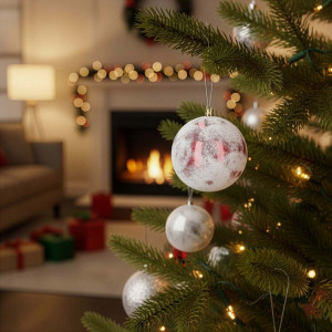 Ozdoby jsou vyrobeny z nerozbitného plastového materiálu, který zajišťuje dlouhou životnost a bezpečné používání. Praktická poutka pro zavěšení umožňují rychlou a pohodlnou instalaci. Díky své odolnosti jsou vhodné pro vnitřní i venkovní použití, takže bez problémů ozdobí i terasu či balkon. S průměrem 9,5 cm vytvářejí dekorativní a výrazný prvek na každé větvičce a celkem 12 kusů v sadě poskytne dostatek ozdob pro bohatou a stylově sladěnou vánoční výzdobu.