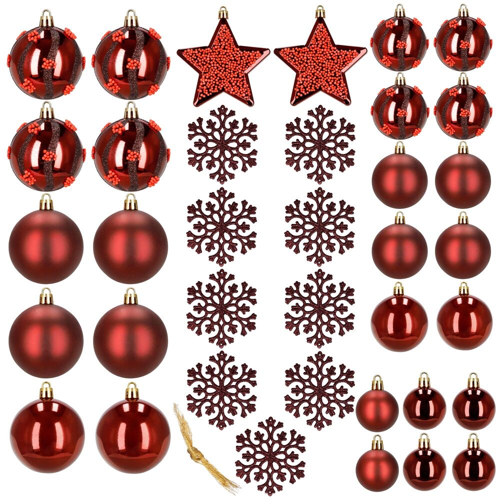 Vánoční baňky červené mix – 7/6/5 cm, sada 40 ks CA1523, přinesou do vašeho domova tradiční a slavnostní atmosféru. Kombinace červené barvy s lesklým a matným povrchem dodává výzdobě hloubku a teplo, které jsou pro Vánoce typické. Sada obsahuje nejen koule různých velikostí, ale i hvězdy a vločky, které ozdobí váš stromeček, věnec či jiné sváteční aranžmá.