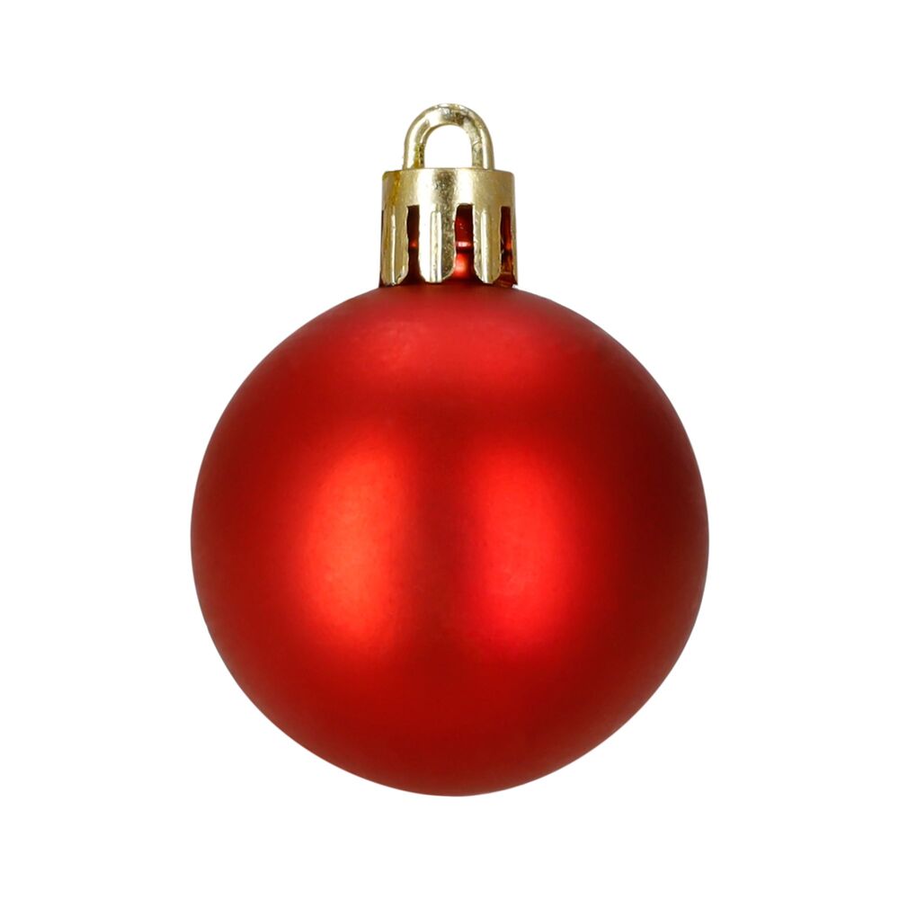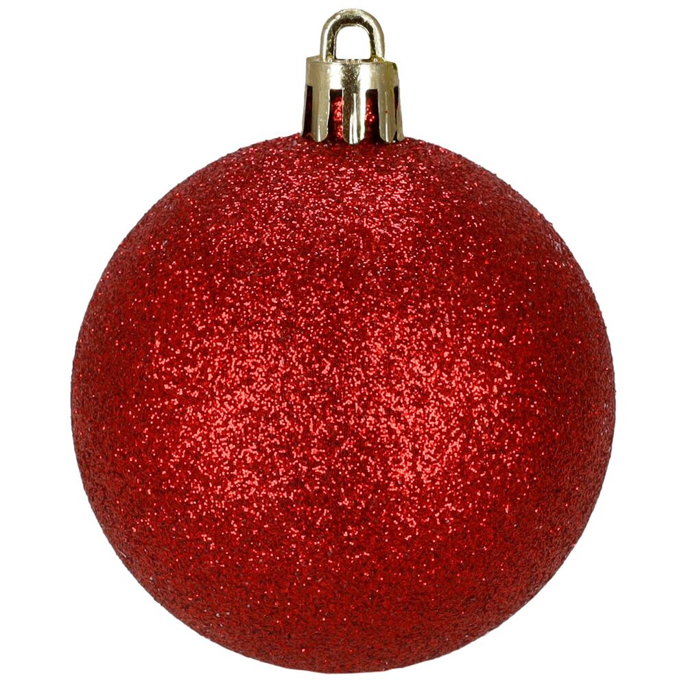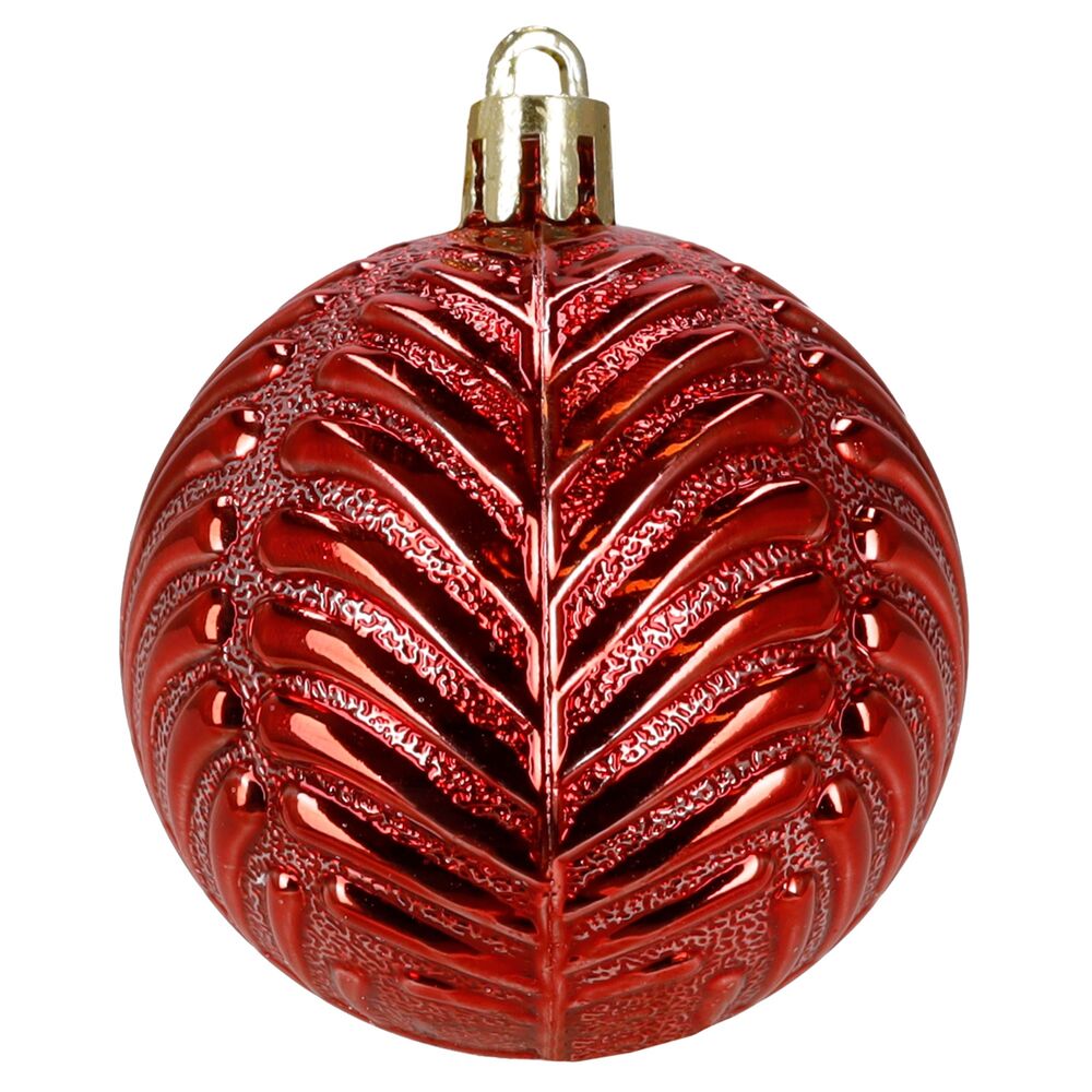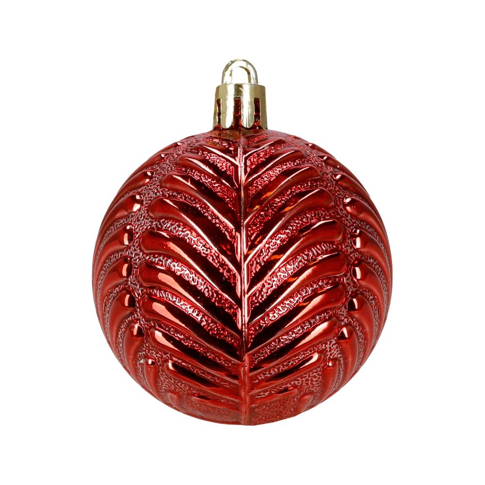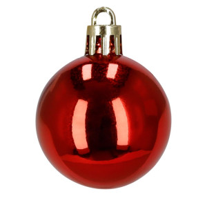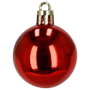 Sada červených vánočních ozdob v různých tvarech a povrchových úpravách dodá výzdobě výrazný a hravý sváteční vzhled. Obsahuje lehké, nerozbitné plastové koule, šišky i ozdoby ve tvaru lízátek a cukrátek, vše s poutky pro snadné zavěšení. Vhodné na stromeček i jako dekorace do interiéru či exteriéru. Průměry koulí: 4 cm, 5 cm a 6 cm.