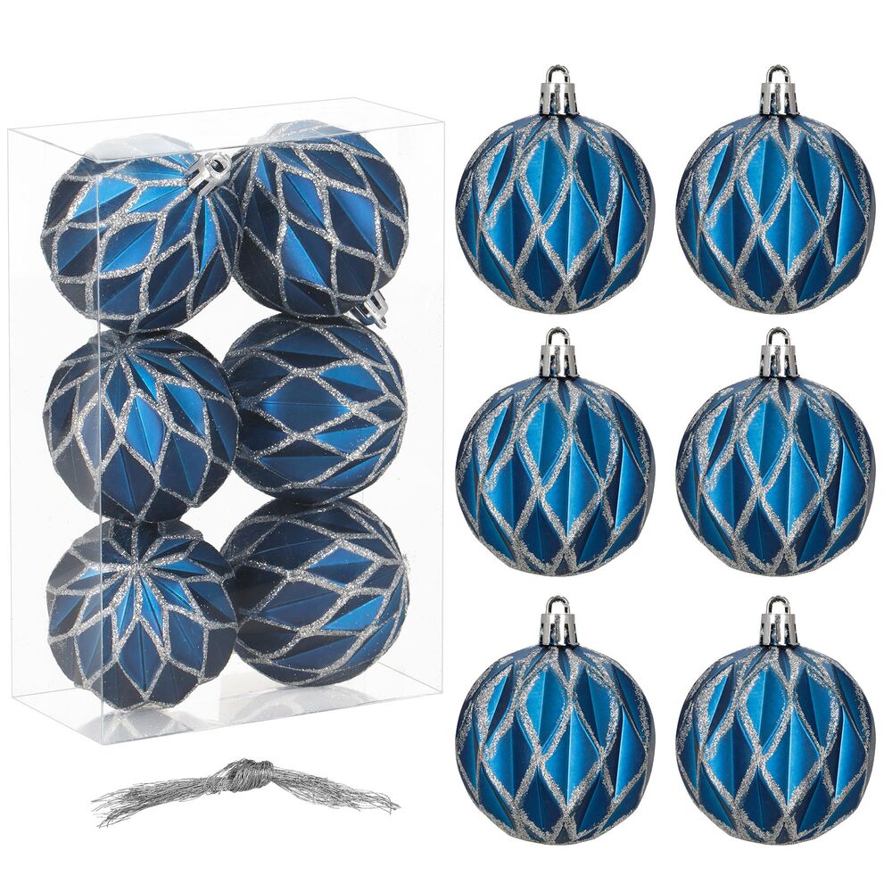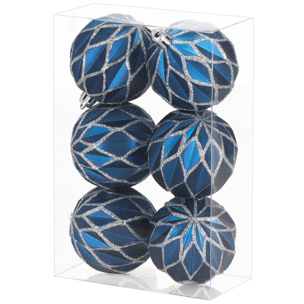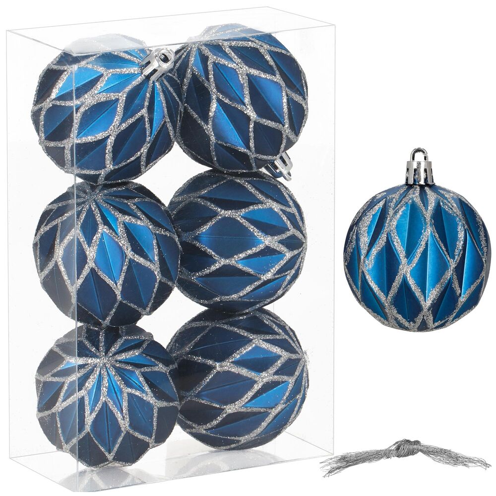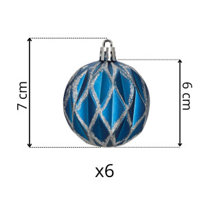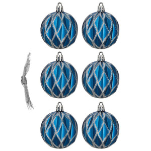 Sada modrých vánočních koulí s elegantním stříbrným vzorem dodá výzdobě výrazný zimní šmrnc. Ideální jako ozdoba na vánoční stromeček i do dalších dekorací. Vyrobeny z nerozbitného plastového materiálu, vhodné pro vnitřní i venkovní použití. Snadné zavěšení díky praktickým poutkům. Průměr 6 cm, celkem 6 kusů v sadě.