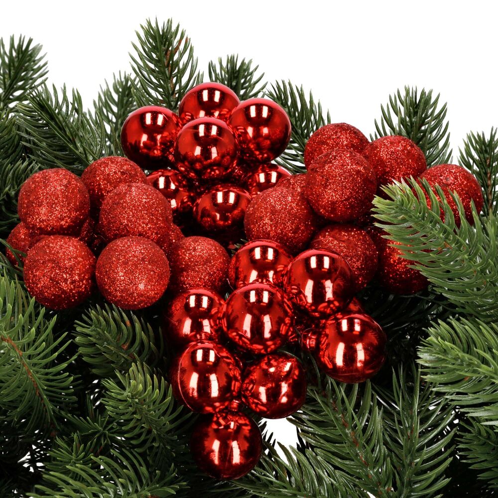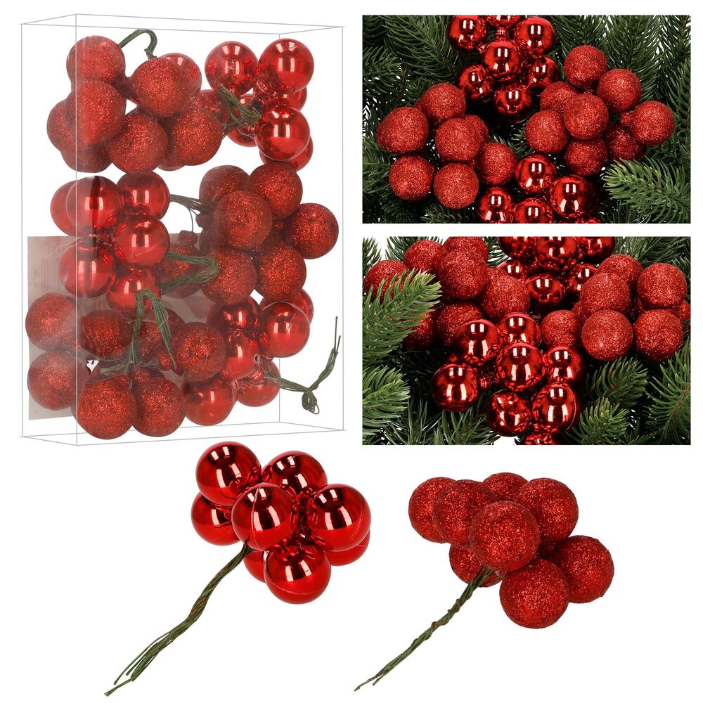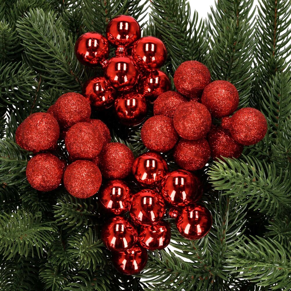 Vánoční baňky na drátku červené mix – 2 cm sada 54 ks přinášejí do interiéru klasické kouzlo svátků. Díky kombinaci lesklých a třpytivých povrchů vytvářejí krásný kontrast a působivý efekt na stromku, věnci czy stole. Jejich snadné uchycení drátkem umožňuje rychlé zdobení bez háčků a složité manipulace. Tyto malé kouličky jsou nejen dokonalou ozdobou stromečku, ale také praktickým doplňkem při zdobení dalších dekorací – od adventních věnců po sváteční aranžmá.