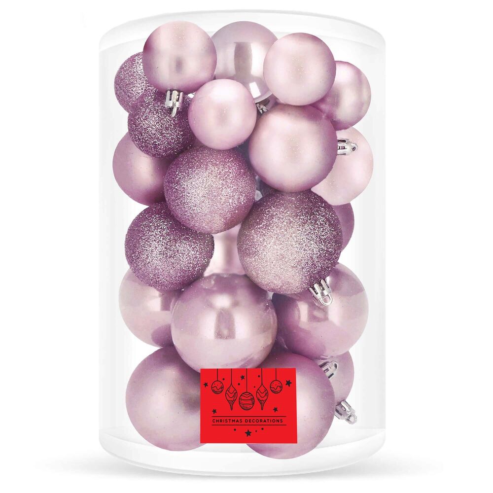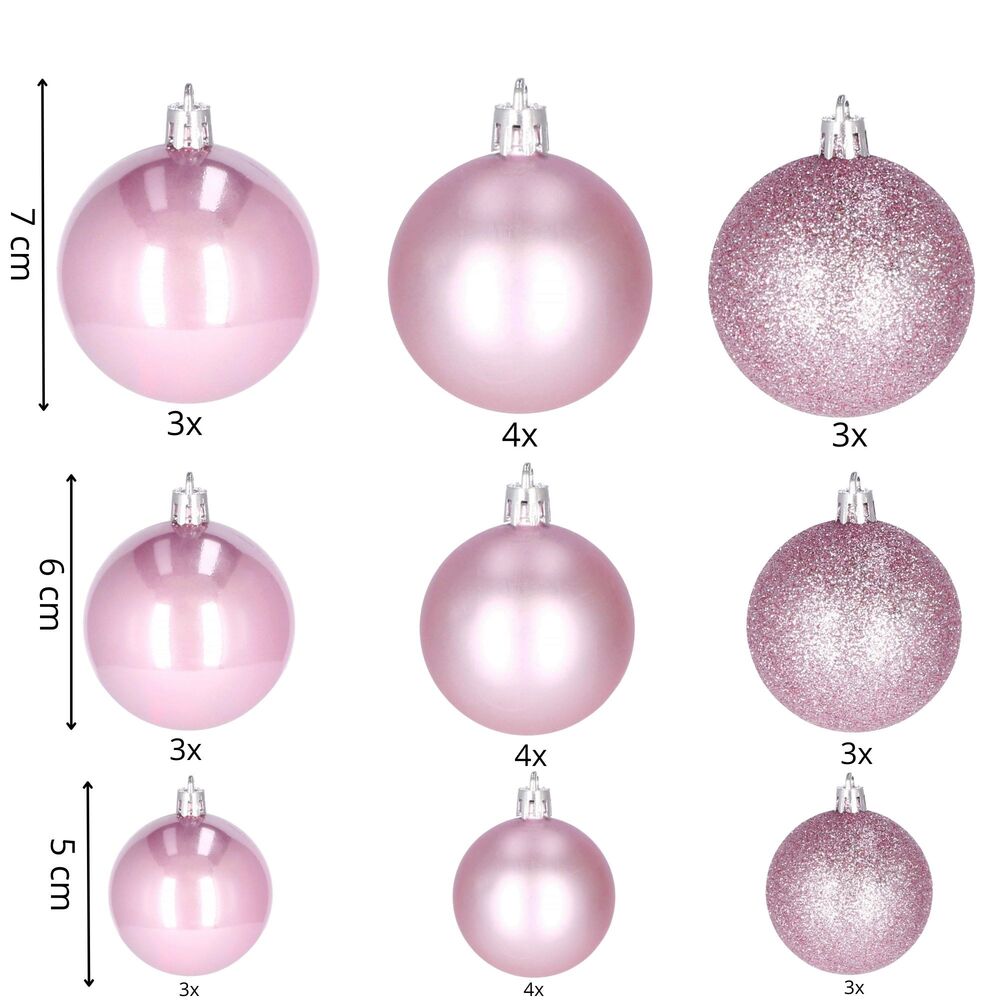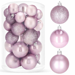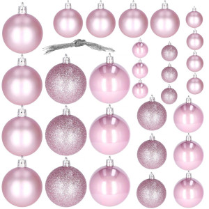 Sada 30 ks růžových baněk na stromeček se třemi různými vzory. Průměr baňky je 3,5/4,5/5,5 cm. Poutko na zavěšení, nerozbitný plastový materiál. Ideální k výzdobě stromečku nebo jako vánoční dekorace. Zdarma stříbrné provázky pro snadné zavěšení.