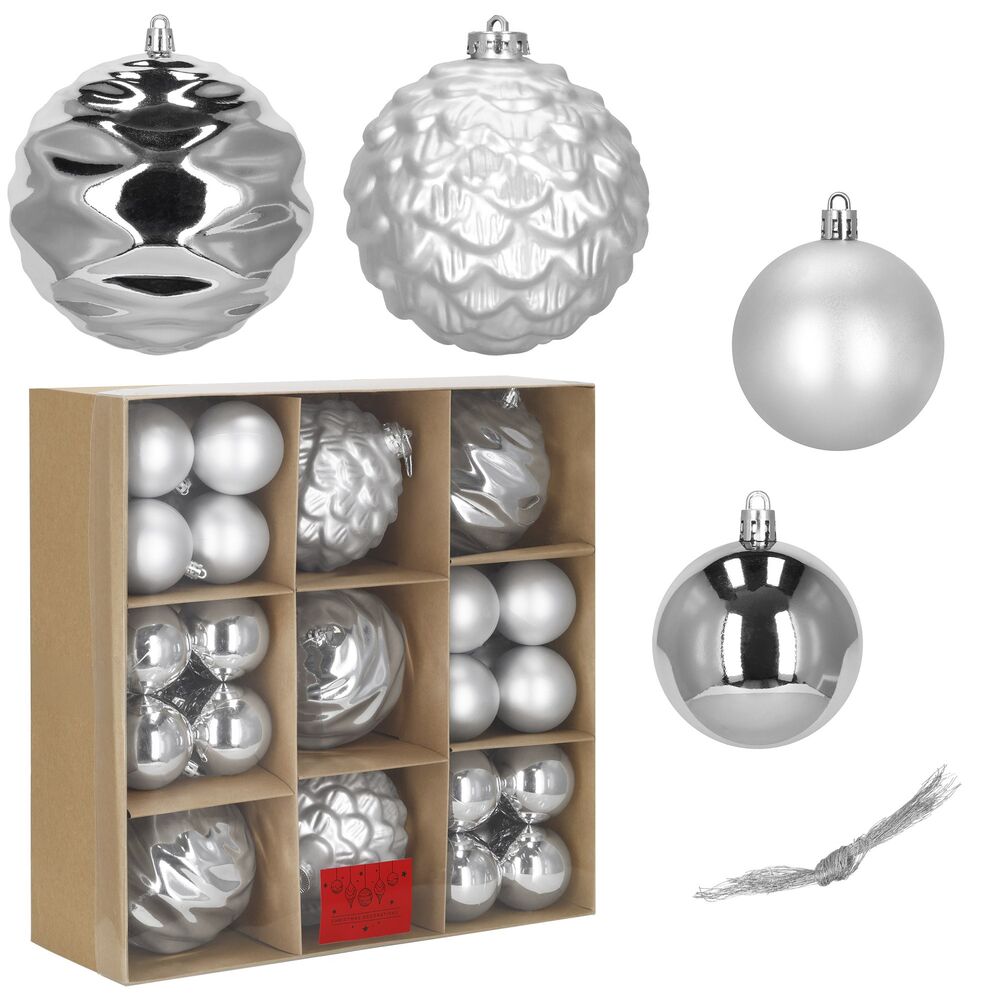 Vánoční baňky stříbrné mix – 12/6 cm, sada 37 ks CA0964, přinášejí do vašeho domova elegantní a moderní vzhled. Kombinace lesklých a matných povrchů ve stříbrném odstínu působí čistě, stylově a snadno ladí s jakoukoli barevnou výzdobou. Koule různých velikostí jsou ideální na vánoční stromeček, ale i jako doplněk do svátečních aranžmá či stolních dekorací.