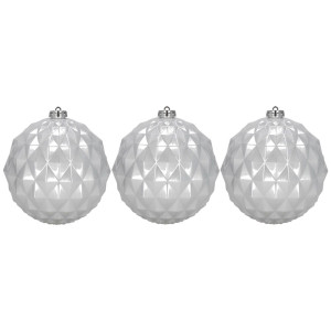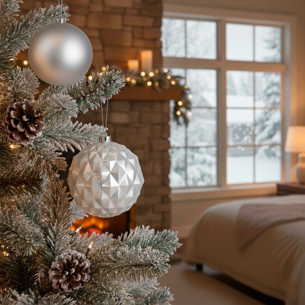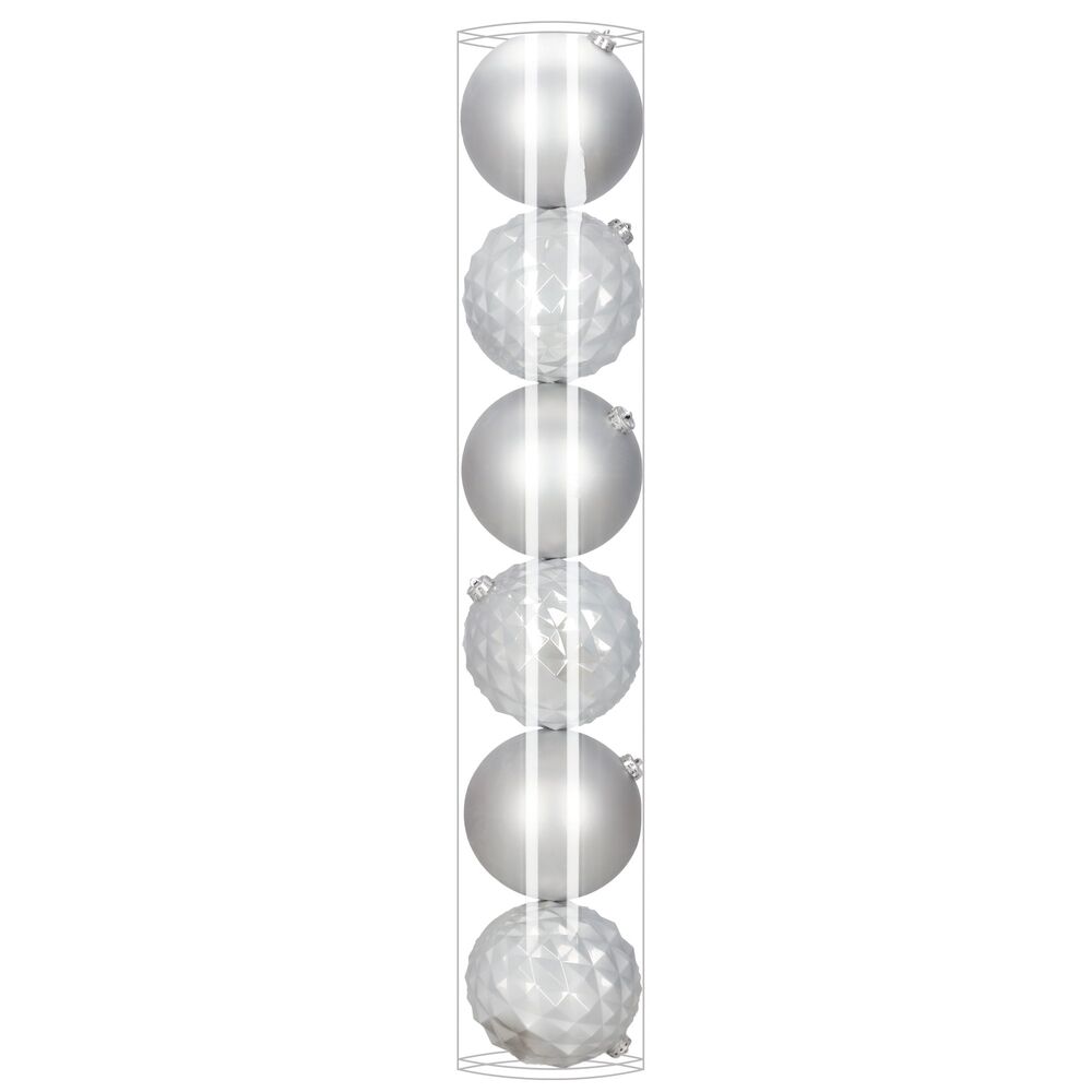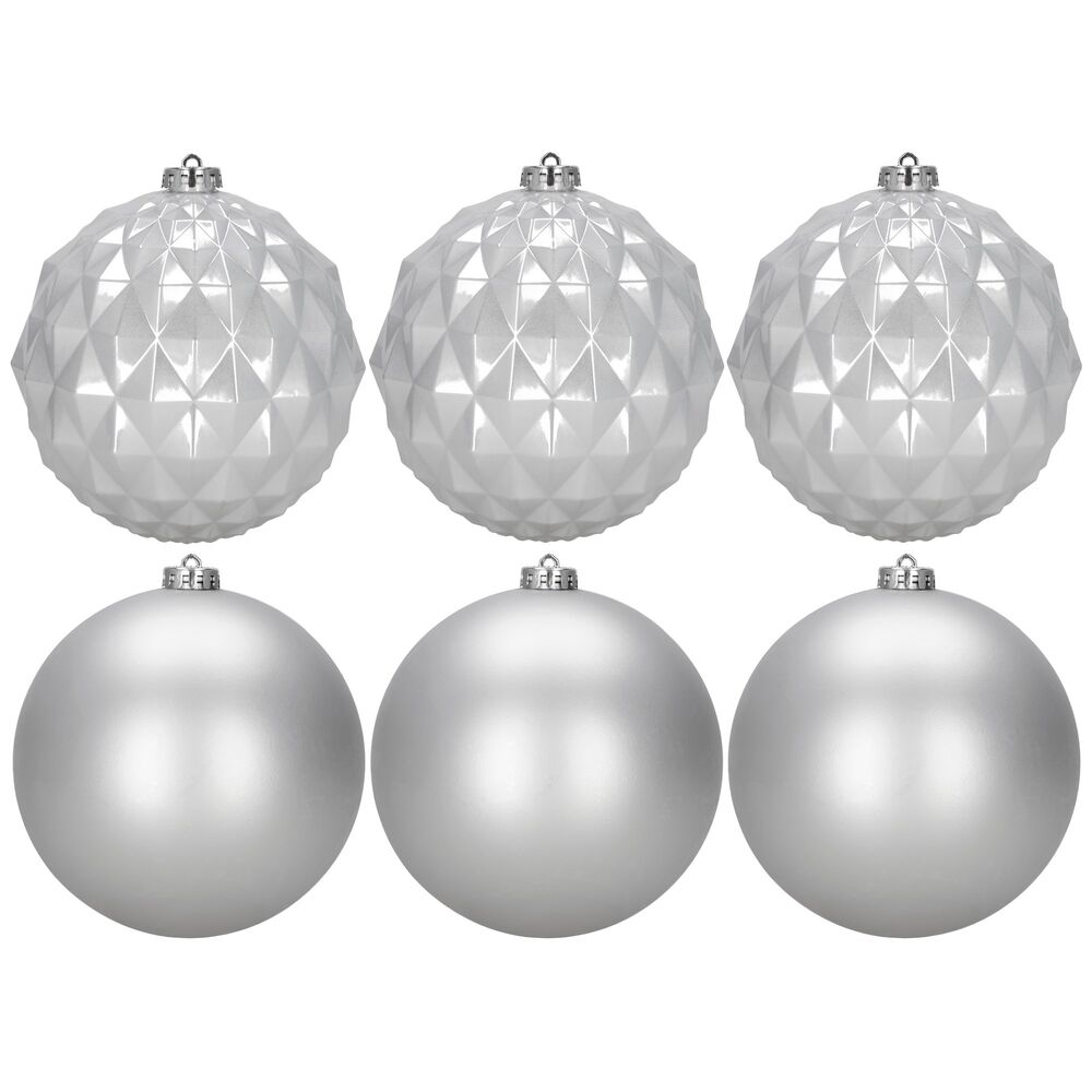Elegantní sada vánočních ozdob ve stříbrném mixu dodá vaší výzdobě moderní a luxusní vzhled. Koule o průměru 13,5 cm jsou ideální na vánoční stromeček i jako výrazná dekorace. Vyrobeny z nerozbitného plastu, vhodné pro vnitřní i venkovní použití. Součástí balení jsou poutka na zavěšení. Celkem 6 kusů v sadě.