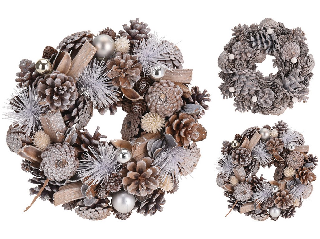 Dotaz na produktTrvanlivý adventní věnec M.A.T. Group 386630 o průměru 24 cm je určený pro výzdobu vchodových dveří, proto vaše návštěvy již z dálky bezpečně poznají, že je u vás ta pravá vánoční atmosféra. Kulatý tvar symbolizuje neustálý koloběh života, kdy se uplynulý rok po Vánocích uzavírá a začíná nový. Vánoční věnec kombinuje hnědou a bílou barvu, které jsou typické pro zimní krajinu. Dále je zkrášlen šiškami, jehličím a zlatými vánočními koulemi a každý kus má naprosto unikátní zdobení. Jednotlivé varianty se tedy mírně liší a jsou dodávány zcela náhodně.