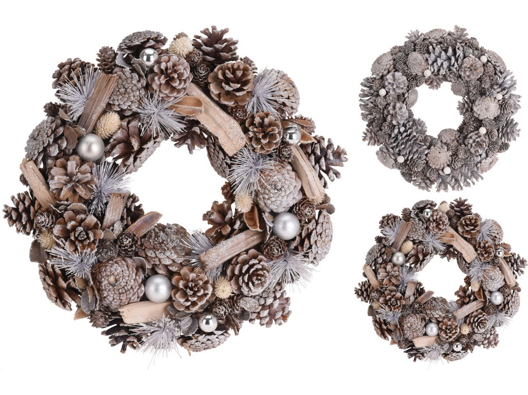 Dotaz na produktTrvanlivý adventní věnec M.A.T. Group 386631 o průměru 34 cm je určený pro výzdobu vchodových dveří, proto vaše návštěvy již z dálky bezpečně poznají, že je u vás ta pravá vánoční atmosféra. Kulatý tvar symbolizuje neustálý koloběh života, kdy se uplynulý rok po Vánocích uzavírá a začíná nový. Vánoční věnec kombinuje hnědou a bílou barvu, které jsou typické pro zimní krajinu. Dále je zkrášlen šiškami, jehličím a zlatými vánočními koulemi a každý kus má naprosto unikátní zdobení. Jednotlivé varianty se tedy mírně liší a jsou dodávány zcela náhodně.
