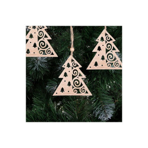 Dotaz na produktSada šesti kusů nádherně vyřezávaných ozdob ve tvaru stromečku. Výška 7 cm, přírodní materiál, provázek na zavěšení. Ideální k výzdobě stromečků nebo jako vánoční dekorace.