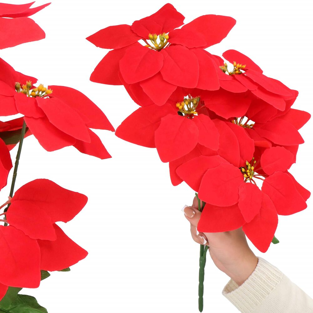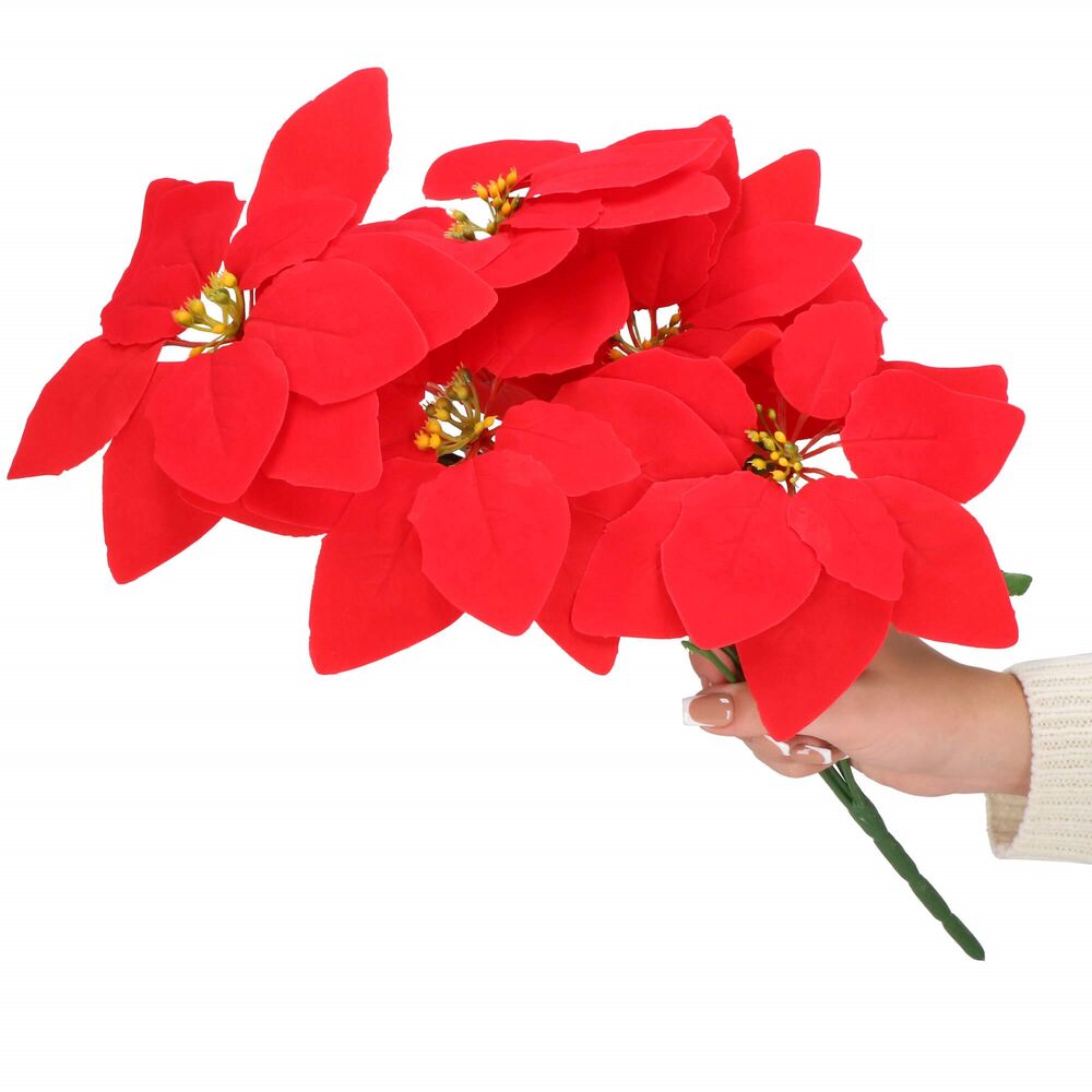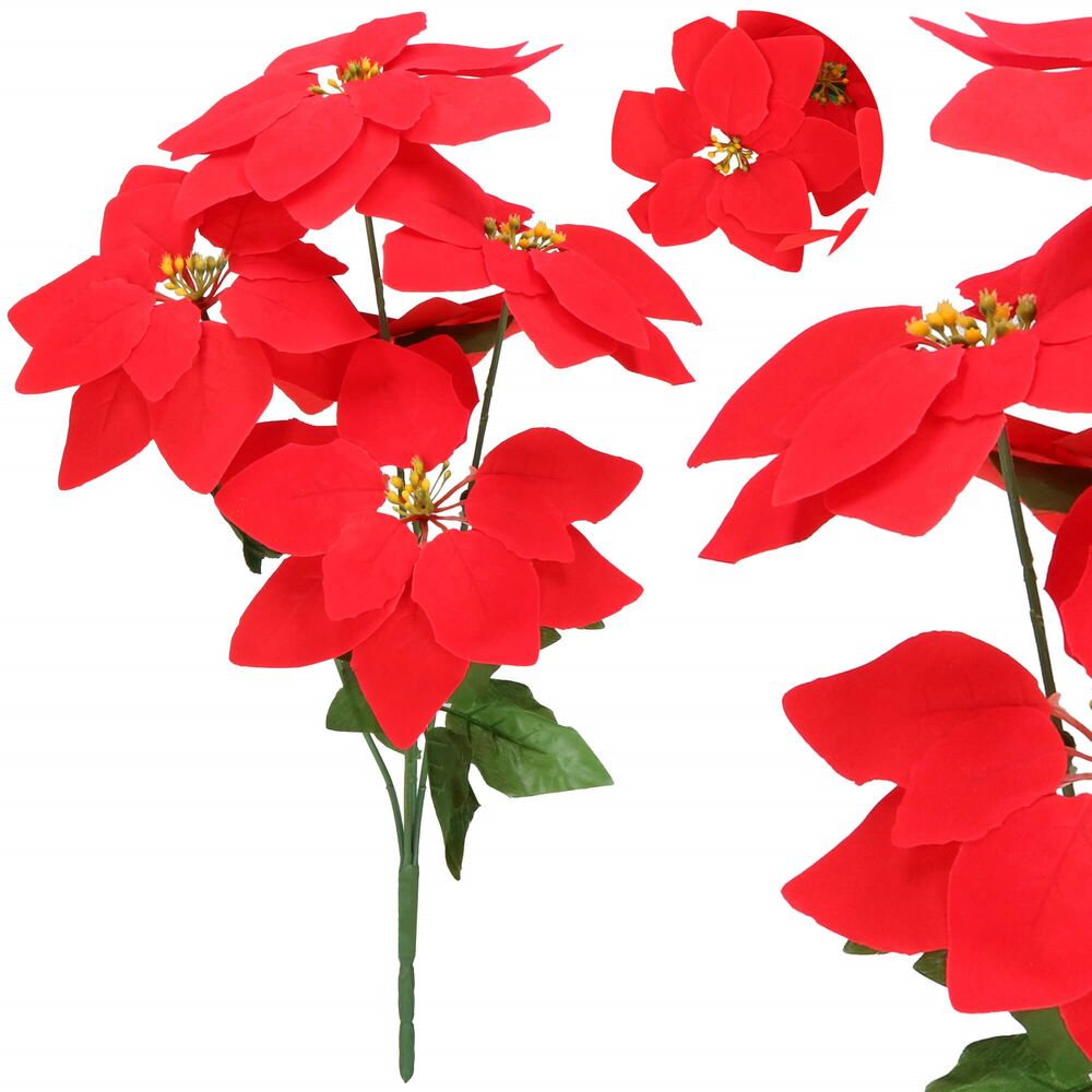 Umělá vánoční hvězda v podobě kytice. Slouží k vytvoření sváteční atmosféry v interiéru. Ideální jako ozdoba do vázy, na stůl nebo jako součást vánoční aranžmá. Elegantní doplněk pro domácnost i kancelář. Velikost 50 cm, červená barva.