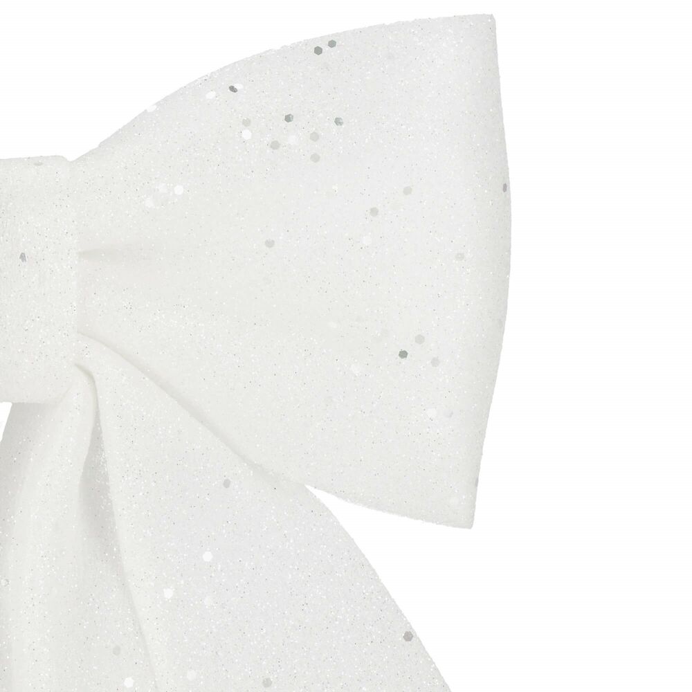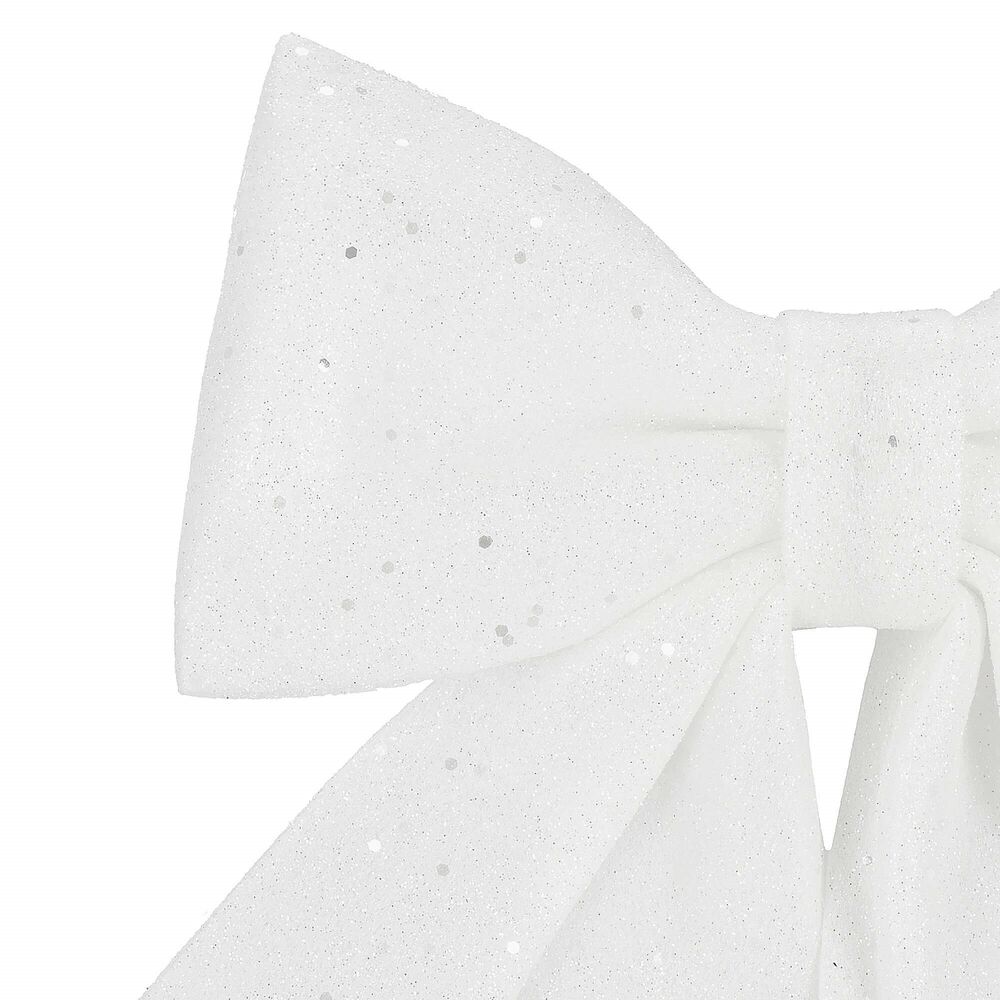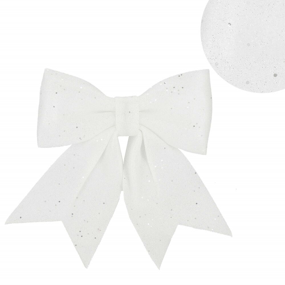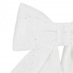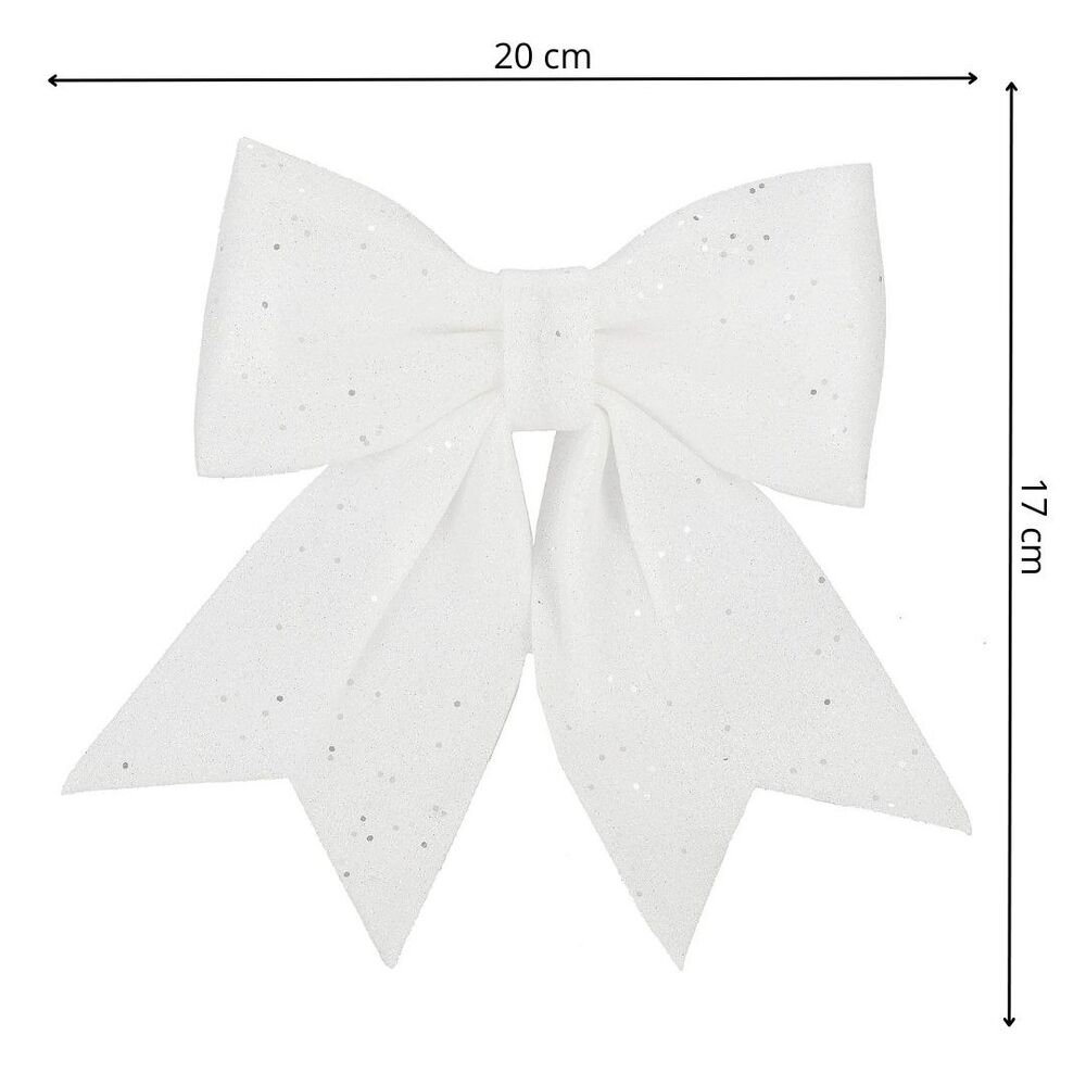 Mašle na vánoční stromeček o rozměru 17x20 cm, bílé barvy. Opatřena drátkem, díky kterému se dá snadno a rychle připevnit na větev vánočního stromku, rákos nebo girlandu. Perfektní využití jako ozdoba vánočního stromečku, nebo také jako dekorace pro zdobení věnců a jiných vánočních dekorací.