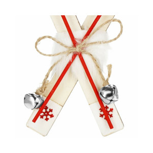 Sada 2ks lyží s rolničkou a provázkem na zavěšení. Kvalitní, odolný materiál, výška 12,5 cm. Ideální k výzdobě stromečků nebo jako vánoční dekorace.