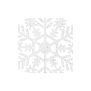 Sada dvanácti kusů sněhových vloček s provázkem na zavěšení. Výška 10 cm, dva vzory vloček, blýskavý povrch se třpytkami, nerozbitný plastový materiál, sněhově bílá barva. Ideální k výzdobě stromečků nebo jako vánoční dekorace.