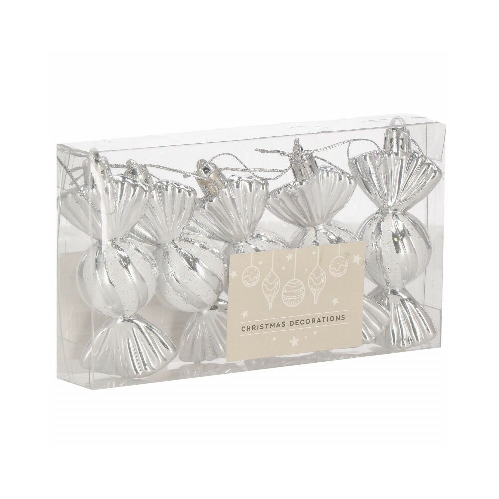 Sada 5 ks barevných ozdob na stromeček s motivem překrásně zabalených cukrovinek. Výška ozdoby 6 cm, zdobeno třpytkami, poutko na zavěšení, nerozbitný plastový materiál. Ideální k výzdobě stromečku nebo jako vánoční dekorace. Zdarma provázky pro snadné zavěšení.