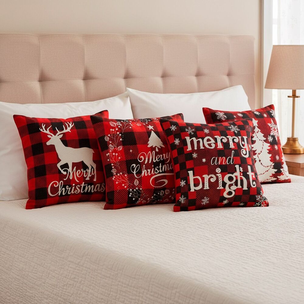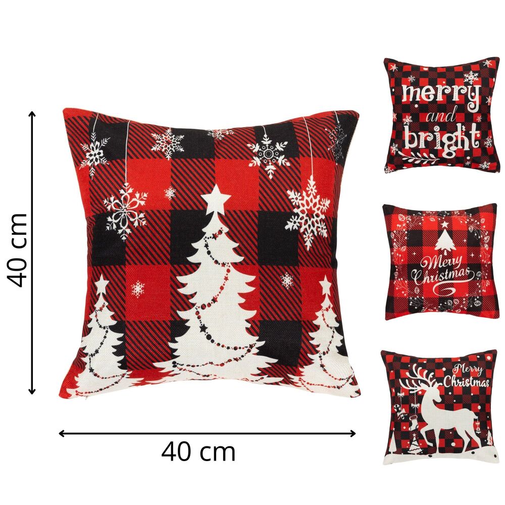 Vánoční povlaky na polštářky v červeno-bílé kombinaci přinesou do vašeho domova hřejivou sváteční náladu. Motivy stromečků, sobů a vánočních nápisů krásně dotvoří zimní výzdobu a hodí se jak k tradičním, tak moderním interiérům. Použitý 100% polyester je měkký na dotek, odolný a snadno se udržuje, takže jsou povlaky ideální pro každodenní používání v období Vánoc. Barevné provedení působí veselým dojmem a okamžitě zútulní každý pokoj.