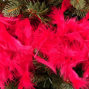 Dotaz na produktLuxusní dekorativní řetěz z pravého peří. Délka 180 cm, červená barva. Úžasně hebká Girlanda je vhodná jako doplňek sváteční výzdoby. Ozdobit s ní můžete jakýkoliv stromeček, dveře, okno nebo sváteční tabuli. Ideální rovněž k doplnění vánočních kostýmů.