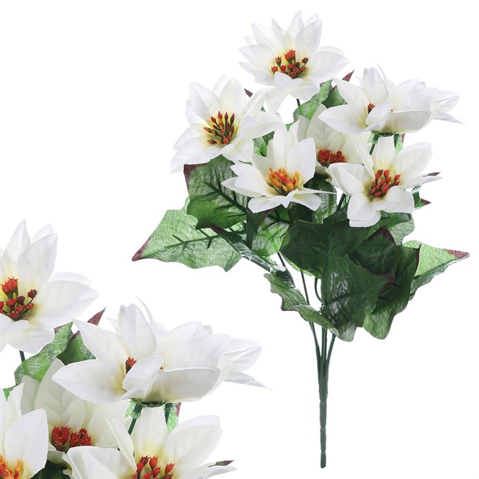 Dotaz na produktOslavte vánoční období s květinovou výzdobou za použití umělé kytice vytvořené speciálně pro tyto nejkrásnější svátky v roce. Je navržená a vyrobená tak, aby vaše prostory obohatila přírodním prvkem i v tomto období. Kombinace použití textilu a plastu při výrobě v realistických barvách s jemnými detaily dodává umělé rostlině autentický živý vzhled. Taková umělá květina vám nikdy neuvadne a neztratí na své kráse, díky čemuž ji můžete používat opakovaně. Lze si samozřejmě vybrat z naší široké nabídky i jiný druh květiny a zkombinovat je dle vaší libosti. Přineste si do svého domova kouzlo Vánoc s naší exkluzivní umělou kyticí bílých vánočních růží a vytvořte si každý rok nezapomenutelnou sváteční atmosféru.