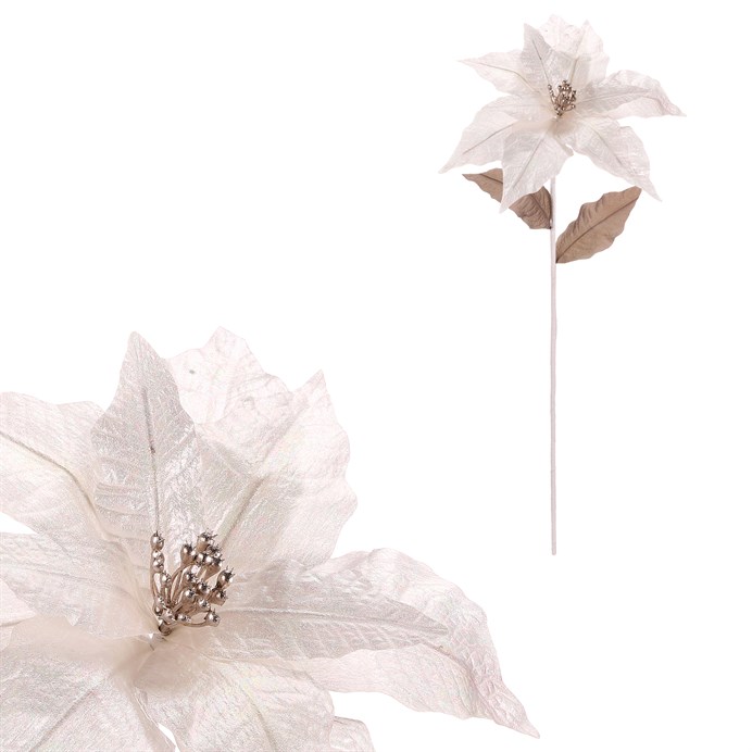 Dotaz na produkt Na splátky ještě dnesUmělá vánoční růže s bílým květem zdobeným drobnými třpytkami vnese do sváteční výzdoby nádech elegance a jemnosti. Krásně se hodí do vánočních výzdob, kde její zářivý vzhled dokonale vynikne a nikdy neuvadne.