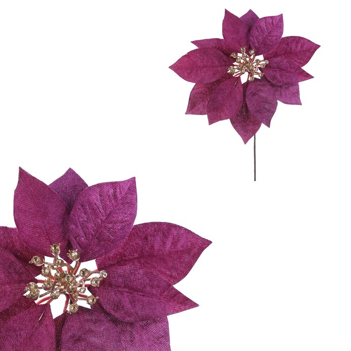 Dotaz na produktKvět vánoční růže v krásném fialovém provedení a s pozlaceným středem, bude skvělým základem pro vaši vánoční výzdobu. Tato cizokrajná rostlina se u nás čím dál tím více stává neodmyslitelným prvkem a symbolem Vánoc. Bohužel nám však většinou vydrží v plné kráse jen krátce. Máme tu však elegantní řešení v podobě této umělé varianty, která vypadá skvěle a poslouží vám pro výzdobu i v mnoha dalších letech, a to ve svěží kráse, jako byste si ji právě pořídili.