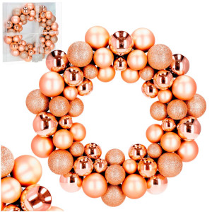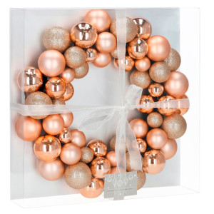 Vánoční věnec 34 cm CA1388 v odstínu růžového zlata dodá vašemu domovu elegantní a moderní vánoční atmosféru. Kombinace matných, lesklých a třpytivých koulí vytváří luxusní vzhled, který se hodí jak do klasického, tak i současného interiéru. Tento dekorativní prvek je ideální na zavěšení na dveře, zeď nebo jako ozdoba svátečního stolu, kde zaručeně zaujme na první pohled.