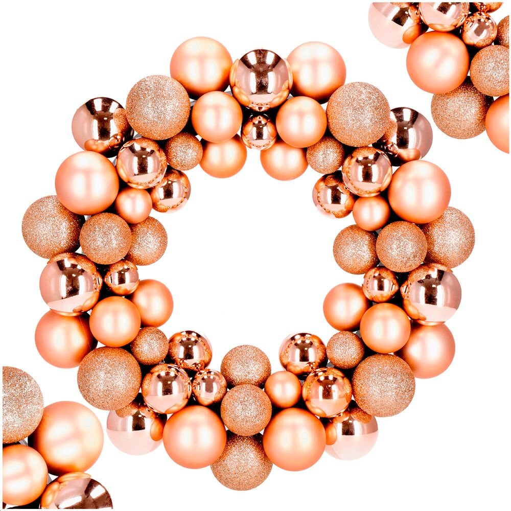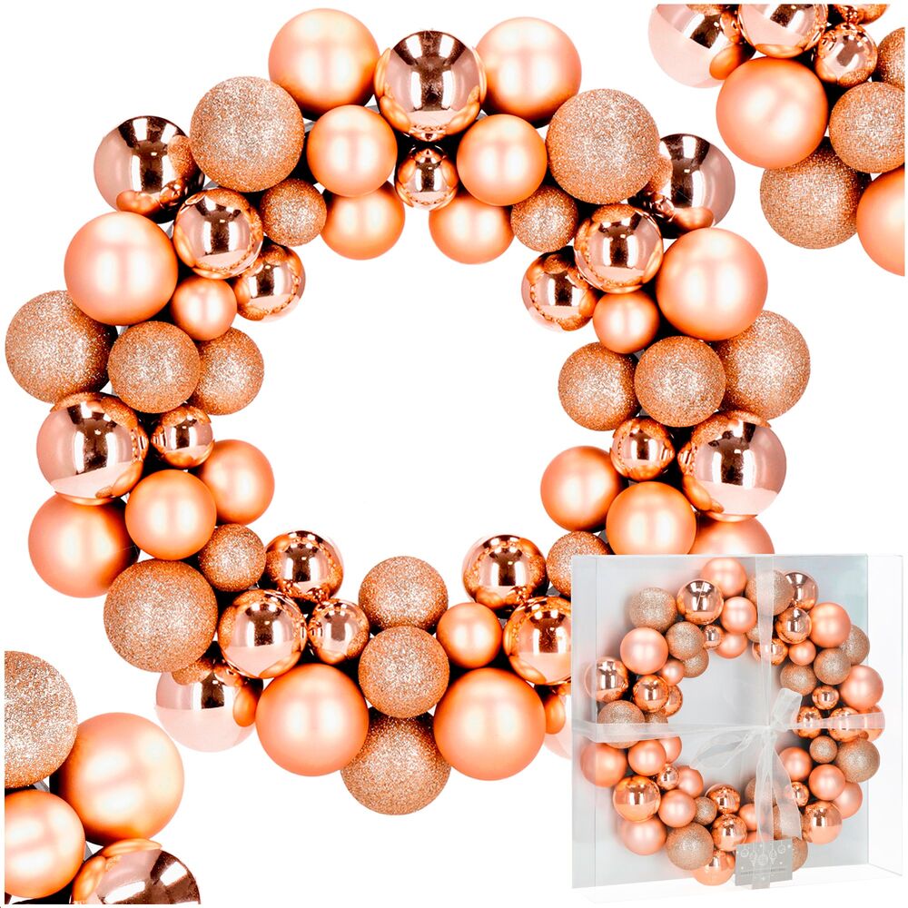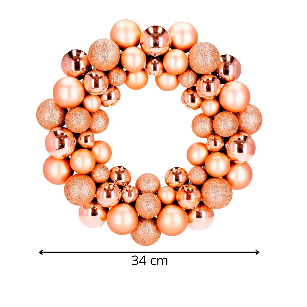 Elegantní vánoční věnec v odstínu růžového zlata dodá vašemu domovu slavnostní a moderní vzhled. Vyroben z nerozbitného plastového materiálu, ideální k zavěšení na dveře nebo jako dekorace na sváteční stůl. Součástí je poutko pro snadné zavěšení. Vhodný pro vnitřní i venkovní použití. Průměr 34 cm.