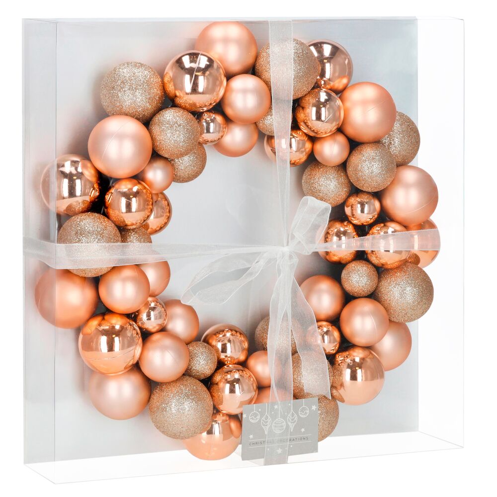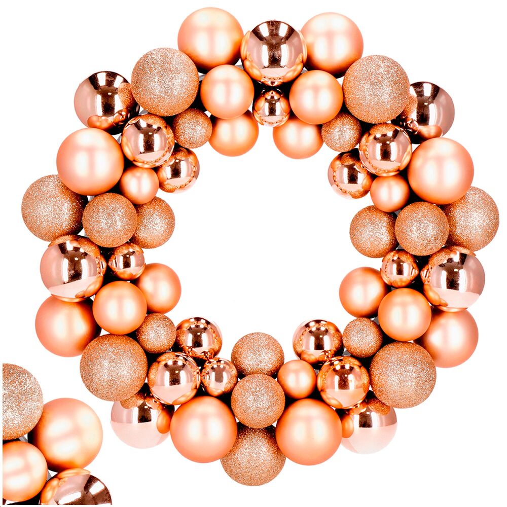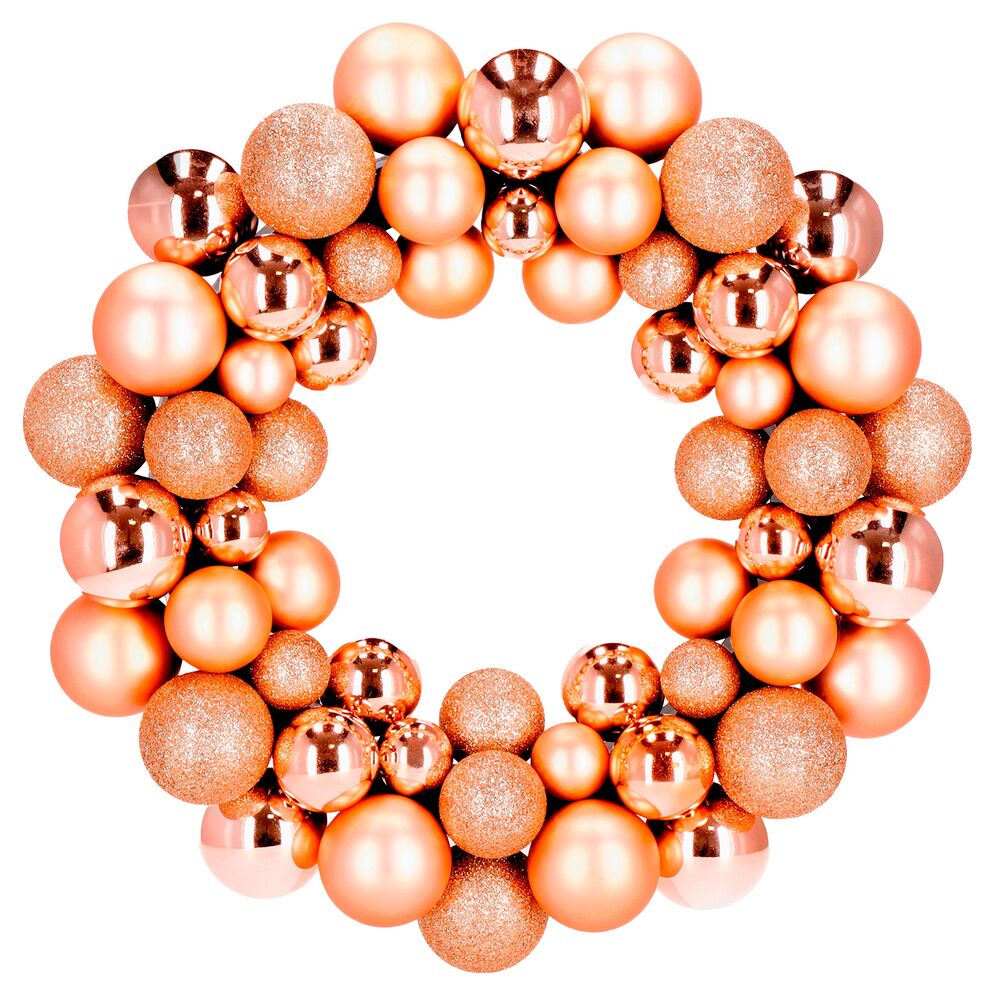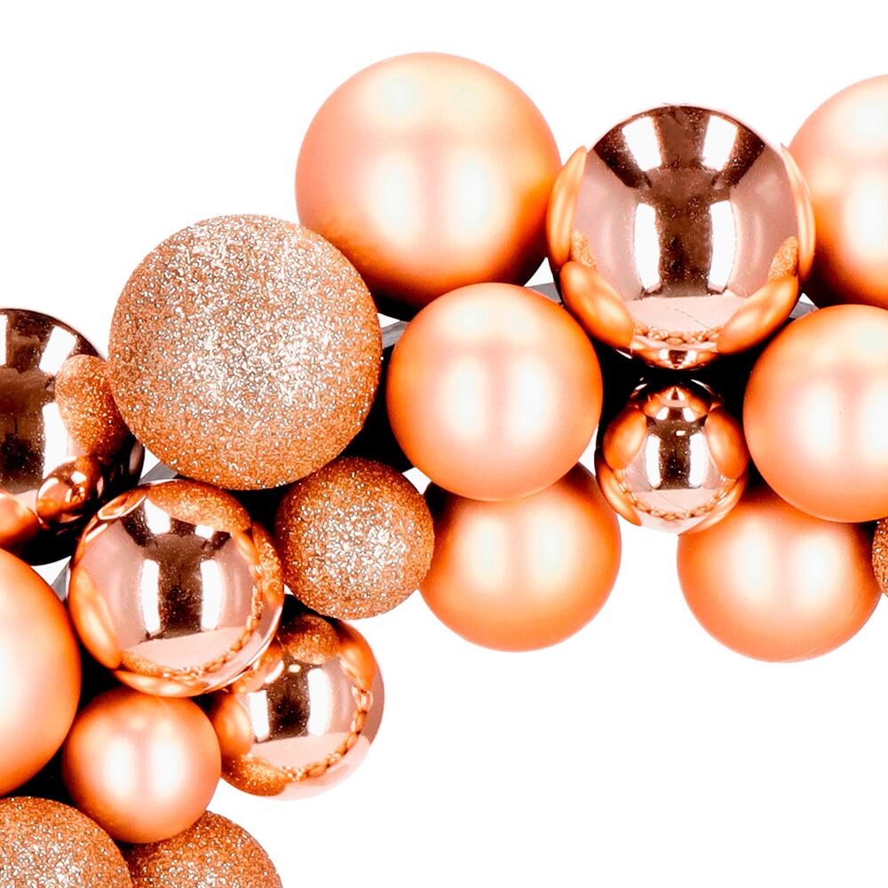 Elegantní vánoční věnec v odstínu růžového zlata dodá vašemu domovu slavnostní a moderní vzhled. Vyroben z nerozbitného plastového materiálu, ideální k zavěšení na dveře nebo jako dekorace na sváteční stůl. Součástí je poutko pro snadné zavěšení. Vhodný pro vnitřní i venkovní použití. Průměr 34 cm.