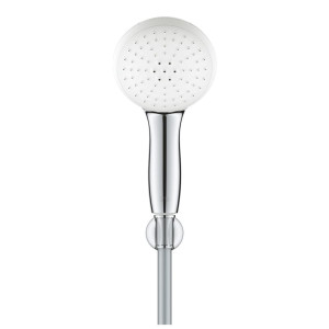 Dotaz na produktSprchový set GROHE Tempesta 110 se skvělým výkonem a technologií pro úsporu vody je ideální pro každou koupelnu. Ruční sprcha o průměru 110 mm má 2 proudy pro různé okamžiky: uklidňující Rain zmírňuje stres, zatímco soustředěný Jet je ideální pro oplachování vlasů po šamponování. K oběma je snadný přístup pomocí inovativního přepínače GROHE SmartSwitch na zadní straně sprchové hlavice. Technologie GROHE DreamSpray přizpůsobuje proud vody z každé trysky a zajišťuje tak rovnoměrné stříkání. Technologie GROHE Water Saving výrazně snižuje spotřebu vody, aniž by to bylo na úkor výkonu. Doporučuje se tlak minimálně 1,0 bar GROHE SpeedClean umožňuje vyčistit trysky od vodního kamene pouhým prstem. Silikonový kroužek ShockProof chrání samotnou ruční sprchu nebo sprchovou vaničku či vanu před poškozením při náhodném pádu. Balení obsahuje 1500mm sprchovou hadici Relexaflex a nenastavitelný nástěnný držák Tempesta. Robustní hadice je konstruována tak, aby odolala náročné práci a tlaku vody až 5 barů, tahu až 50 kg a teplu až 70 °C. Hladký povrch se snadno čistí - stačí ho rychle otřít suchým hadříkem a vypadá jako nový - a nepoškodí se, pokud se dostane do kontaktu se sprchovým koutem nebo vanou. Speciální konstrukce AntiFold je zárukou toho, že hadici nehrozí deformace ohnutím. Díky odolné a snadno udržovatelné povrchové úpravě GROHE Long-Life bude tato sada vypadat bezchybně po dlouhá léta.