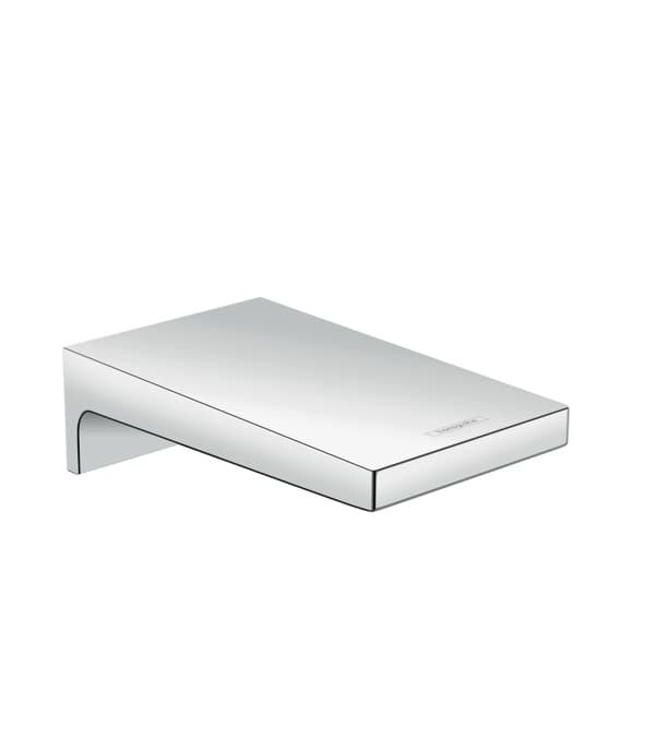 Široký vývod do vany Metropol vyčnívá elegantně ze stěny v délce 185 mm. Tím udržuje okraj vany volný pro důležitější věci – například na produkty péče o tělo, jako je šampon, sprchový gel apod.