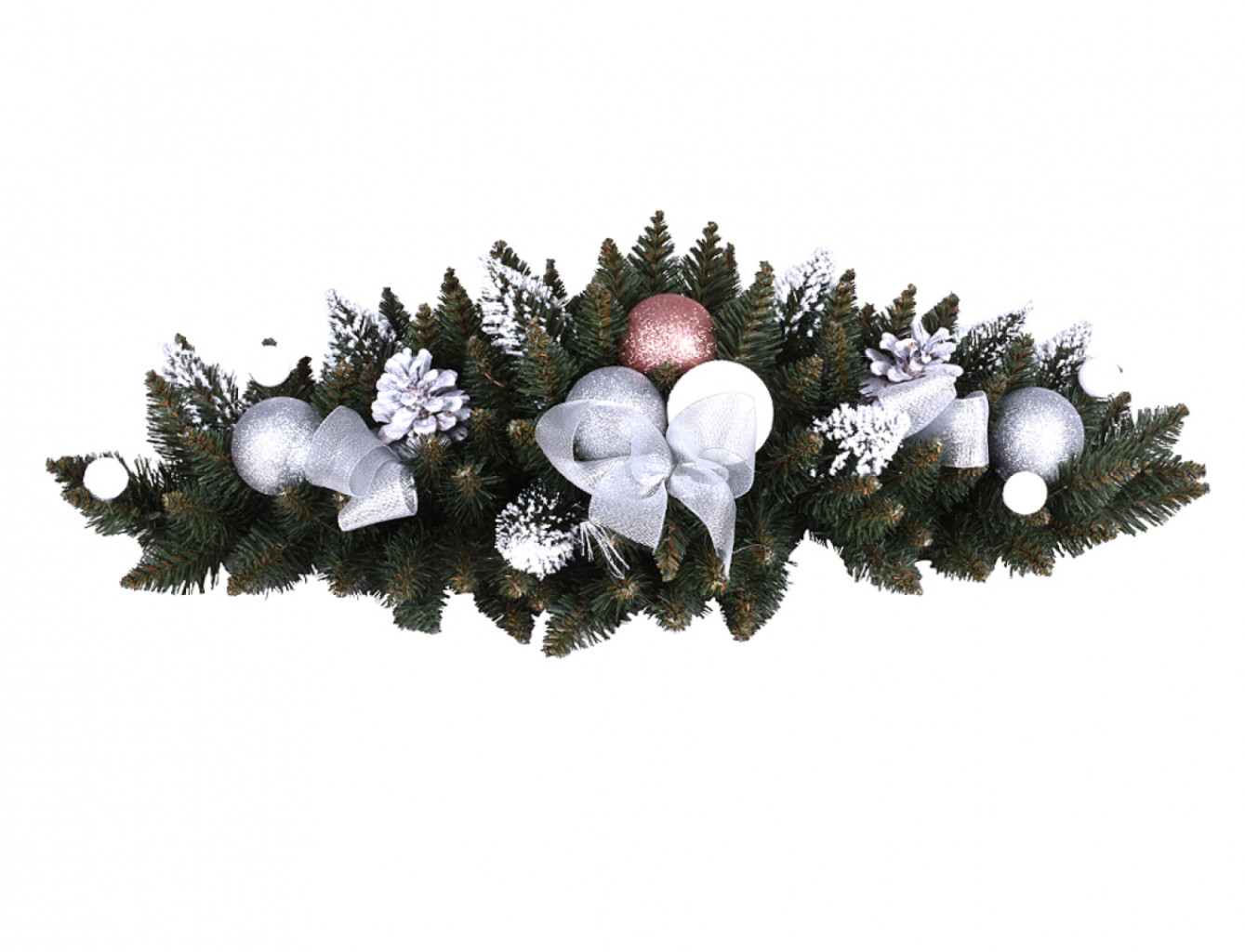 Dotaz na produkt Na splátky ještě dnesUmělá vánoční vazba. Některé jehličnaté větvičky jsou dekorovány bílým zdobením, dále je vazba ozdobena bílými borovými šiškami, stuhami a třpytivými vánočními ozdobami (koule). Mnohostranné využití. Podlouhlého tvaru. Délka 66cm, šířka 25cm. Barva zelená.