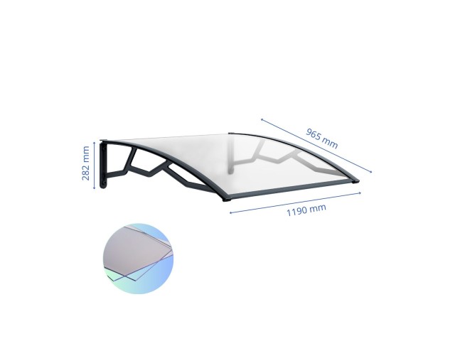 Stříška nad vchodové dveře, okna či jako přístřešek na terasu, balkón a nebo nad cestičku u budovy, rozměr 96,5 x 119 cm, v čiré barvě z polykarbonátu.