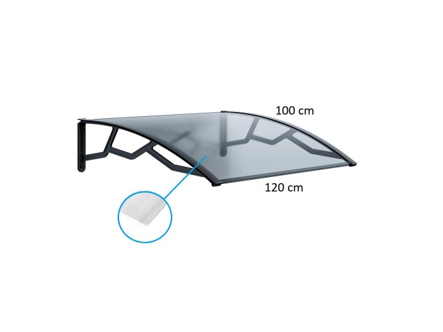 Stříška nad vchodové dveře, okna či jako přístřešek na zeď od výrobce Art Plast o rozměrech 100x120 cm, v transparentní barvě z komůrkového polykarbonátu.
